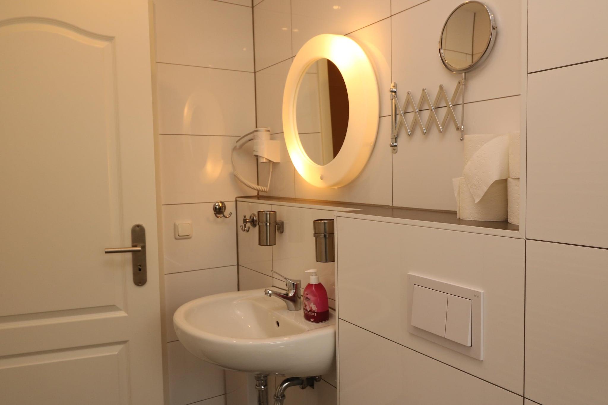 Denne smukt indrettede ferielejlighed i Essens Frohnhausen-distrikt tilbyder et hyggeligt og stilfuldt tilflugtssted for op til 3 gæster, ideel til par, venner eller små familier. Lejligheden ligger på 3. sal og har en privat terrasse, en balkon med naturskøn udsigt og et loungesæt - perfekt til at nyde måltider eller drinks udendørs. Indvendigt har stuen tv, spisebord og klapseng, mens soveværelset byder på en komfortabel dobbeltseng. Det moderne køkken er fuldt udstyret med kogeplader, kaffemaskine, ovn, opvaskemaskine og køleskab, hvilket gør det nemt at tilberede hjemmelavede måltider. Gæsterne kan nyde godt af gratis WiFi, betalingsadgang til vaskemaskine og parkering på stedet. Essentials er kun 200 m væk, med restauranter, butikker og byens centrum (3 km) inden for rækkevidde. Messe Essen ligger kun 5 km væk, og nærliggende attraktioner omfatter Signal Iduna Park, VELTINS-Arena og ZOOM Erlebniswelt.