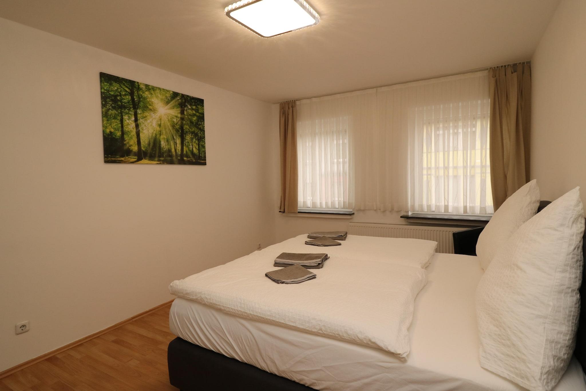 Denne charmerende ferielejlighed i Essens Frohnhausen-distrikt tilbyder et hyggeligt og velindrettet ophold for op til 3 gæster, ideel til par, venner eller små familier. Lejligheden ligger på 3. sal og har en privat terrasse, en balkon med naturskøn udsigt og et loungesæt - perfekt til at nyde måltider eller drinks udendørs. Indvendigt har stuen tv, spisebord og klapseng, mens soveværelset byder på en komfortabel dobbeltseng. Det moderne køkken er fuldt udstyret med kogeplader, kaffemaskine, ovn, opvaskemaskine og køleskab, hvilket gør det nemt at tilberede hjemmelavede måltider. Gæsterne kan nyde godt af gratis WiFi, betalingsadgang til vaskemaskine og parkering på stedet. Essentials er kun 200 m væk, med restauranter, butikker og byens centrum (3 km) inden for rækkevidde. Messe Essen ligger kun 5 km væk, og nærliggende attraktioner omfatter Signal Iduna Park, VELTINS-Arena og ZOOM Erlebniswelt.