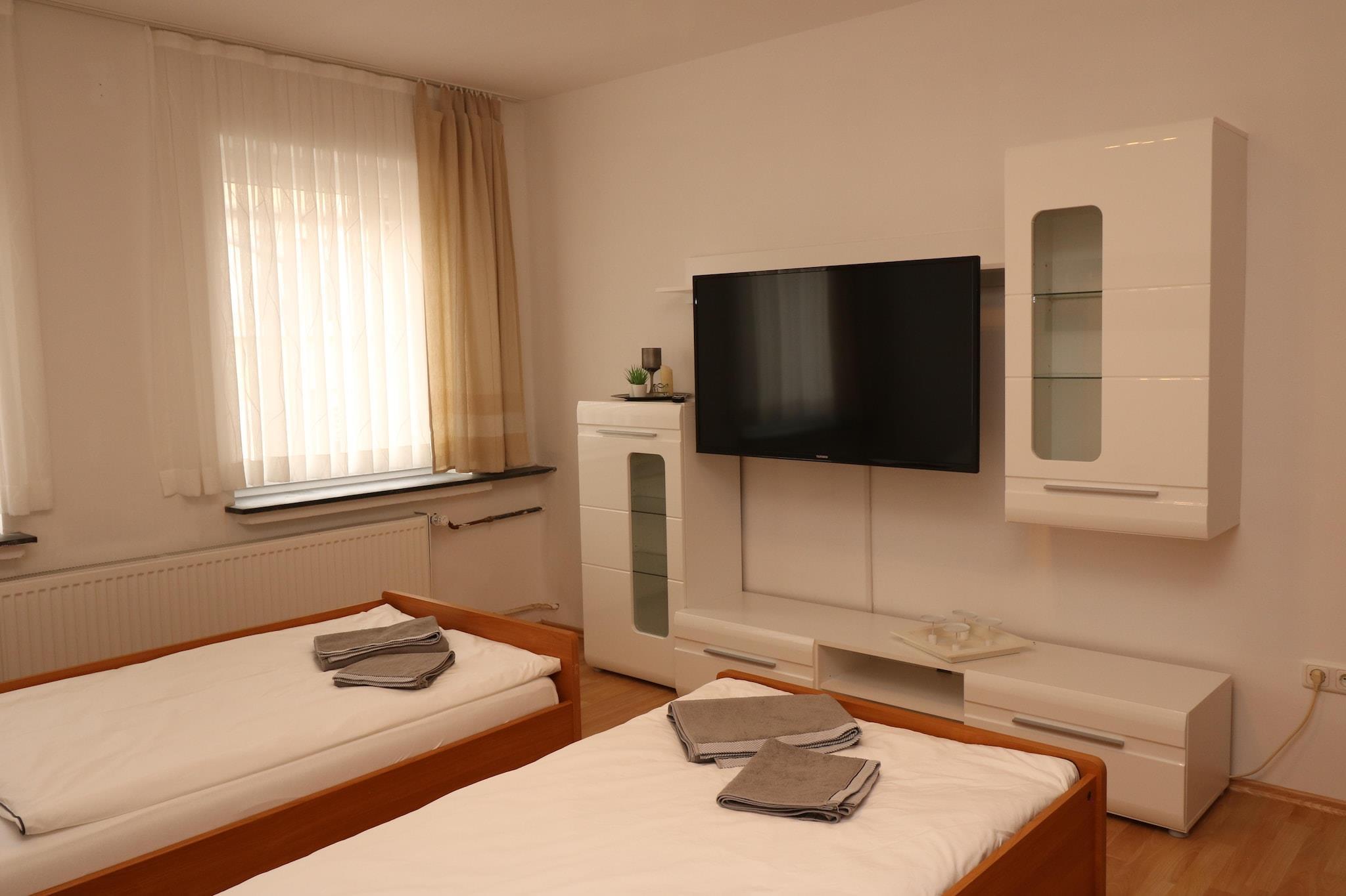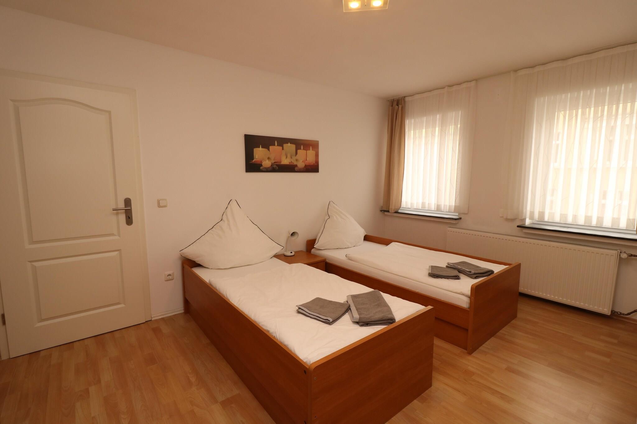 Denne stilfulde ferielejlighed i Essens Frohnhausen-distrikt tilbyder et hyggeligt og veludstyret ophold for op til 4 gæster, ideel til messegæster eller byens opdagelsesrejsende. Lejligheden ligger på 3. sal og har en privat terrasse, en balkon med udsigt over byen og et loungesæt - perfekt til at nyde måltider eller drinks udendørs. Indvendigt har stuen tv, spisebord og klapseng, mens soveværelset byder på en komfortabel dobbeltseng. Det moderne køkken er fuldt udstyret med kogeplader, kaffemaskine, ovn, opvaskemaskine og køleskab, hvilket gør det nemt at tilberede hjemmelavede måltider. Essentials er kun 200 m væk, med restauranter og byens centrum inden for gåafstand. Messe Essen ligger kun 5 km væk, og nærliggende attraktioner omfatter Signal Iduna Park, VELTINS-Arena og ZOOM Erlebniswelt.