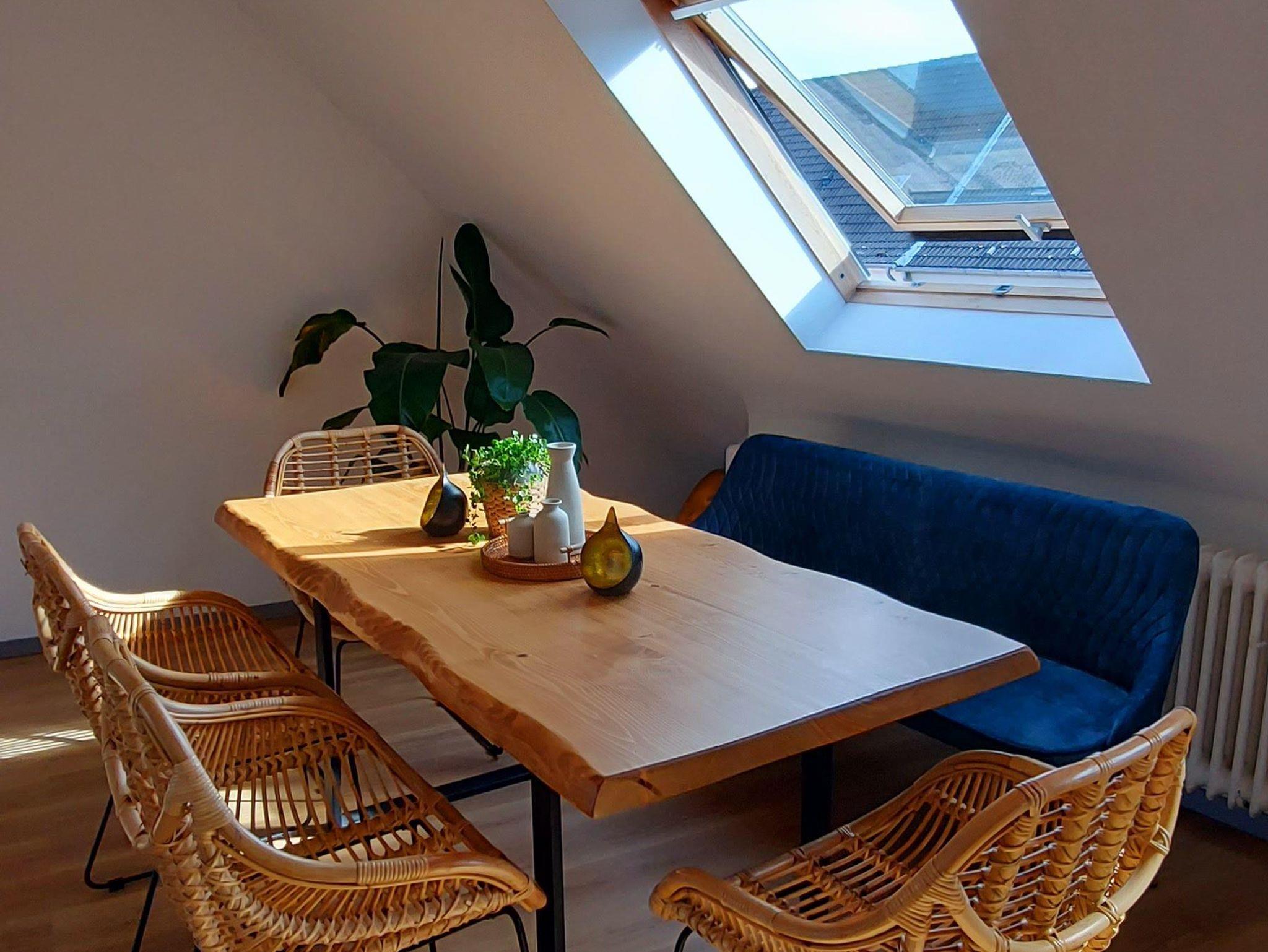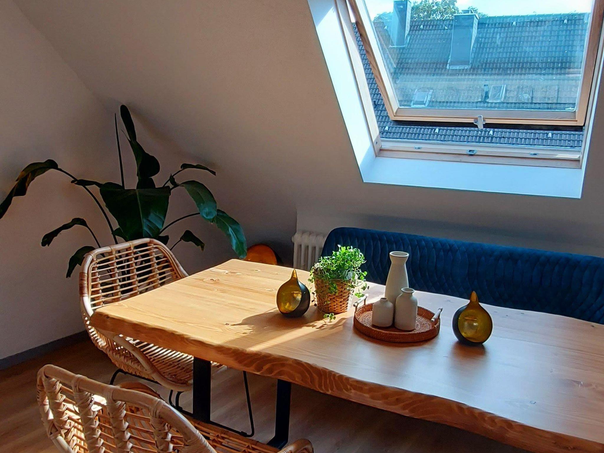 Willkommen in unserer RüSternSuite, einer stilvollen und nachhaltigen Ferienwohnung im Herzen von Essen! Diese wunderschön eingerichtete Unterkunft bietet auf 80 m² viel Platz und Komfort für einen unvergesslichen Aufenthalt – ideal für 2 Personen, aber auch perfekt für bis zu 4 Gäste, dank einer gemütlichen Kuschelecke.