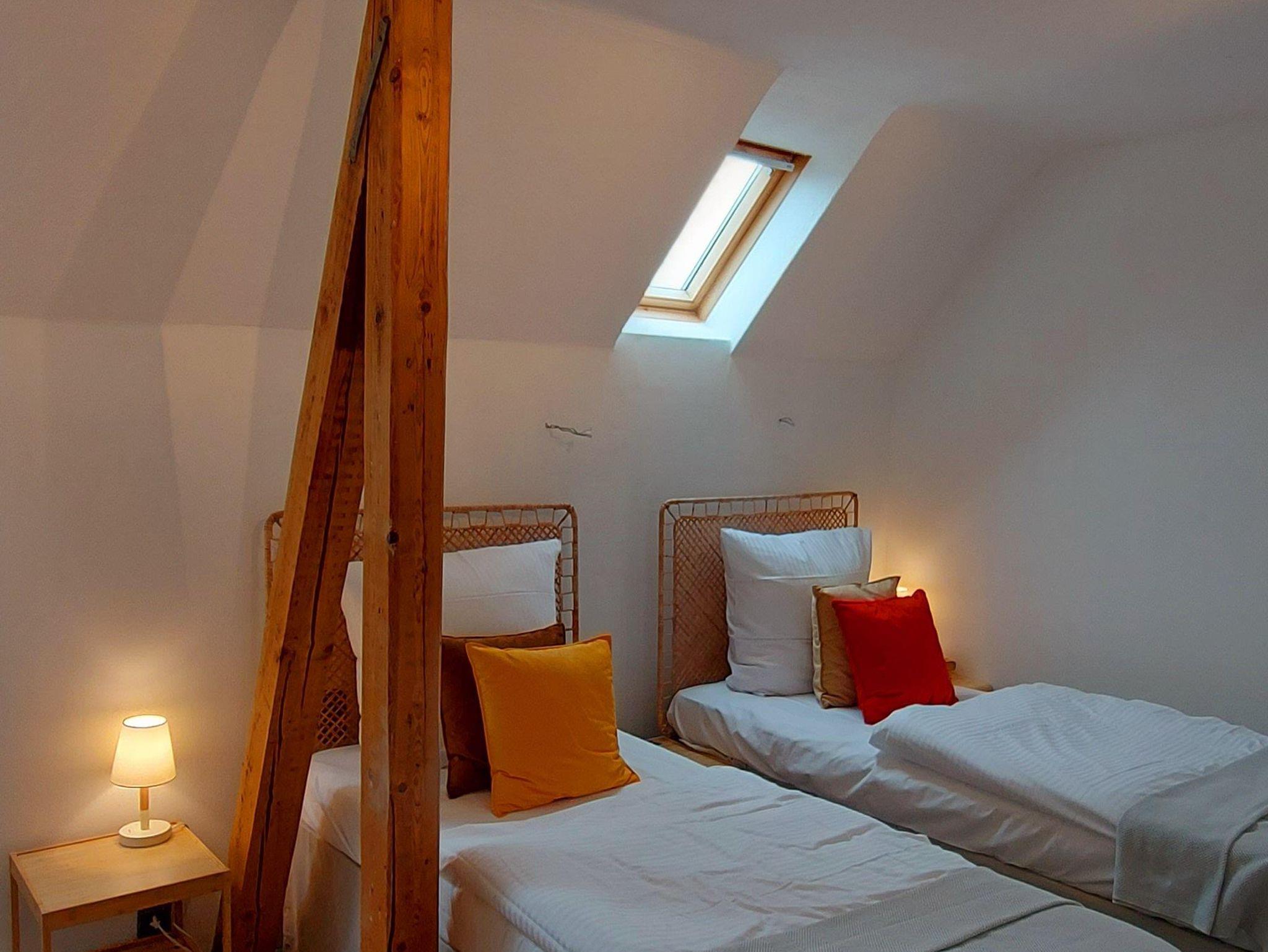 Unsere RüSternSuite wurde frisch renoviert und bietet alles, was Sie für einen erholsamen Aufenthalt benötigen – von einer gemütlichen Couch, die Platz für einen vierten Gast bietet, bis hin zu einem großzügigen Raumgefühl, das sowohl Entspannung als auch Komfort garantiert.