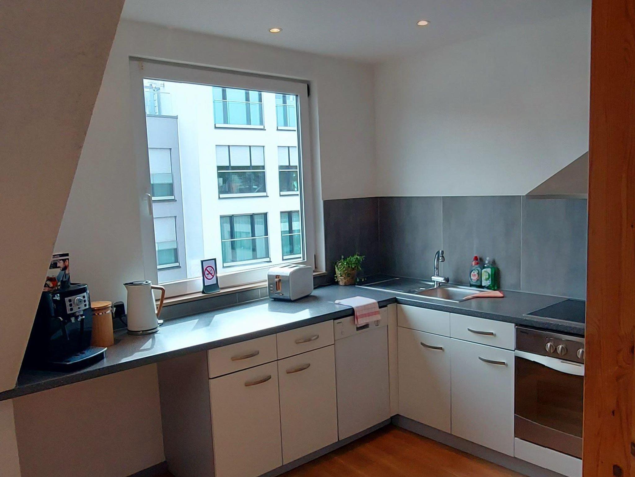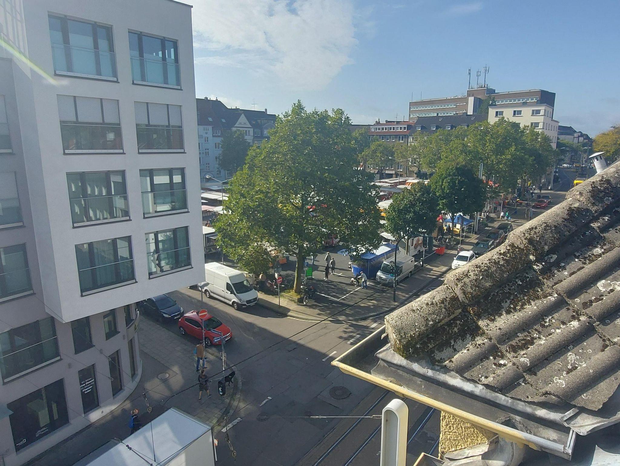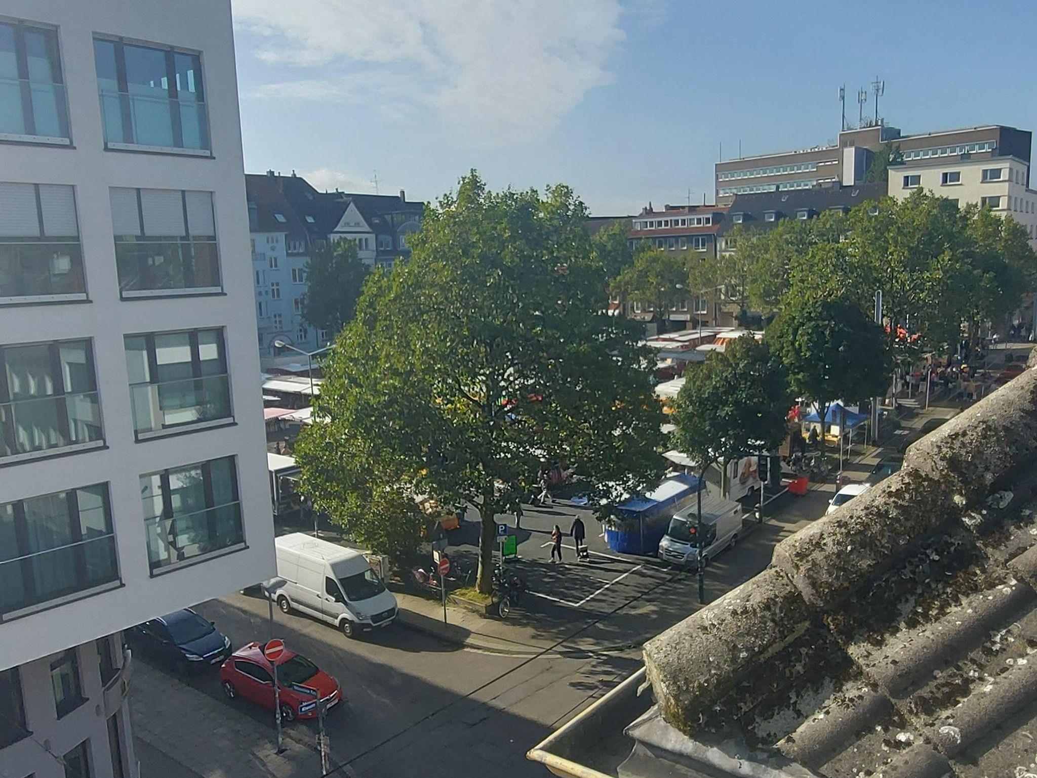 Die Ferienwohnung besteht aus einem großzügigen Schlafzimmer mit zwei komfortablen Betten (jeweils 0,90m x 2,00m) – alle mit dem OEKO-TEX Standard zertifiziert – und einem modernen Wohnzimmer, das einen atemberaubenden Blick auf den Rüttenscheider Markt und die malerischen Dächer von Rüttenscheid bietet. Genießen Sie unvergessliche Sonnenuntergänge direkt von Ihrem Fenster aus.