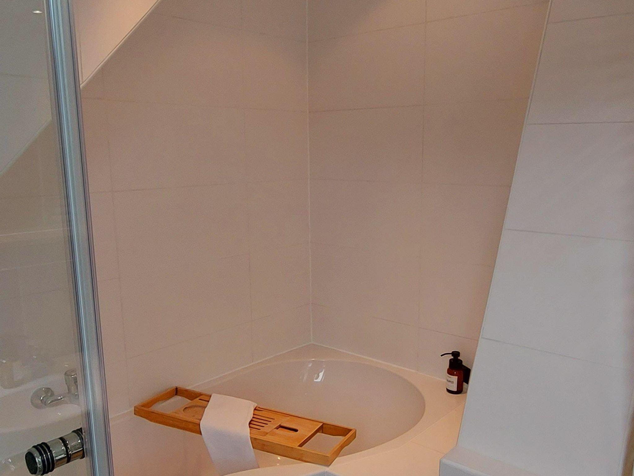 Die voll ausgestattete Küche lässt keine Wünsche offen: Ein großer Kühlschrank, Wasserkocher, Herd, Backofen, Mikrowelle, Toaster und eine Kaffeemaschine stehen für Ihre kulinarischen Erlebnisse bereit. Und das Badezimmer ist mit einer modernen Dusche, WC und kostenlosen Pflegeprodukten ausgestattet. Handtücher und Bettwäsche sind selbstverständlich ebenfalls vorhanden.