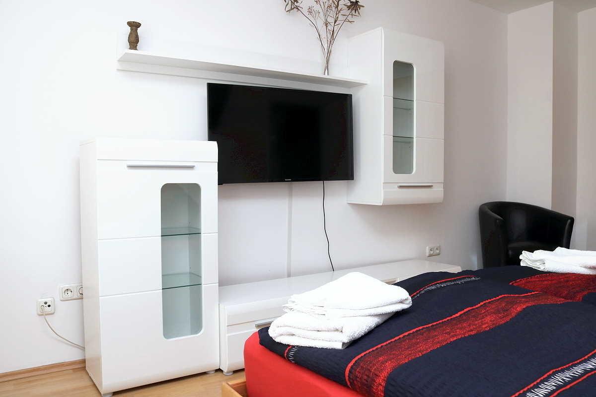 Apartment mit 2 Schlafzimmern für max. 4 Personen, Küche und Duschbad. Geeignet für Städte- und Geschäftsreisende, Messemitarbeiter und Monteure.
