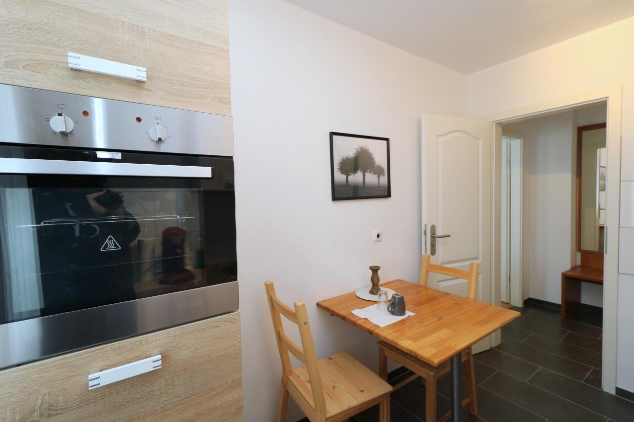 Küche mit Kühlschrank (3-Sterne-Gefrierfach), Backofen, Ceranfeld, Dunstabzughaube mit Kochfeldbeleuchtung, Spülmaschine, Spüle, Kaffeemaschine, Wasserkocher, Tisch und 2 Stühlen. Topfset/Pfanne, Geschirr, Besteck, Tassen und Gläser sind für 4 Personen vorhanden. Bei Buchung für 5 oder 6 Personen stellen wir Ihnen weiteres Geschirr zur Verfügung.