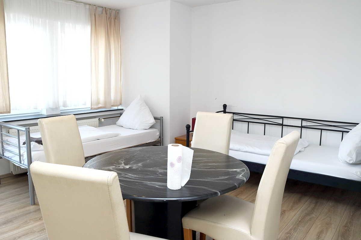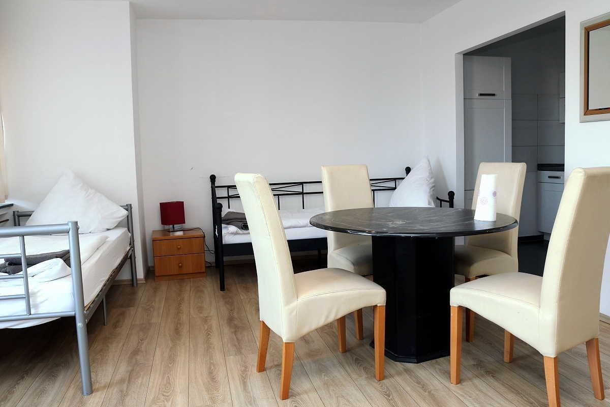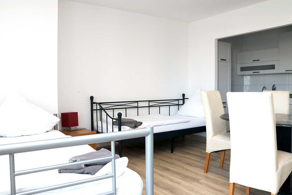 Apartment mit 1 Schlafzimmer für max. 2 Personen (2 Einzelbetten), Wohnraum mit 2 Einzelbetten und Küchenzeile, Duschbad. Geeignet für Städte- und Geschäftsreisende, Messemitarbeiter und Monteure.