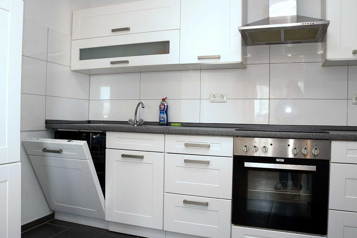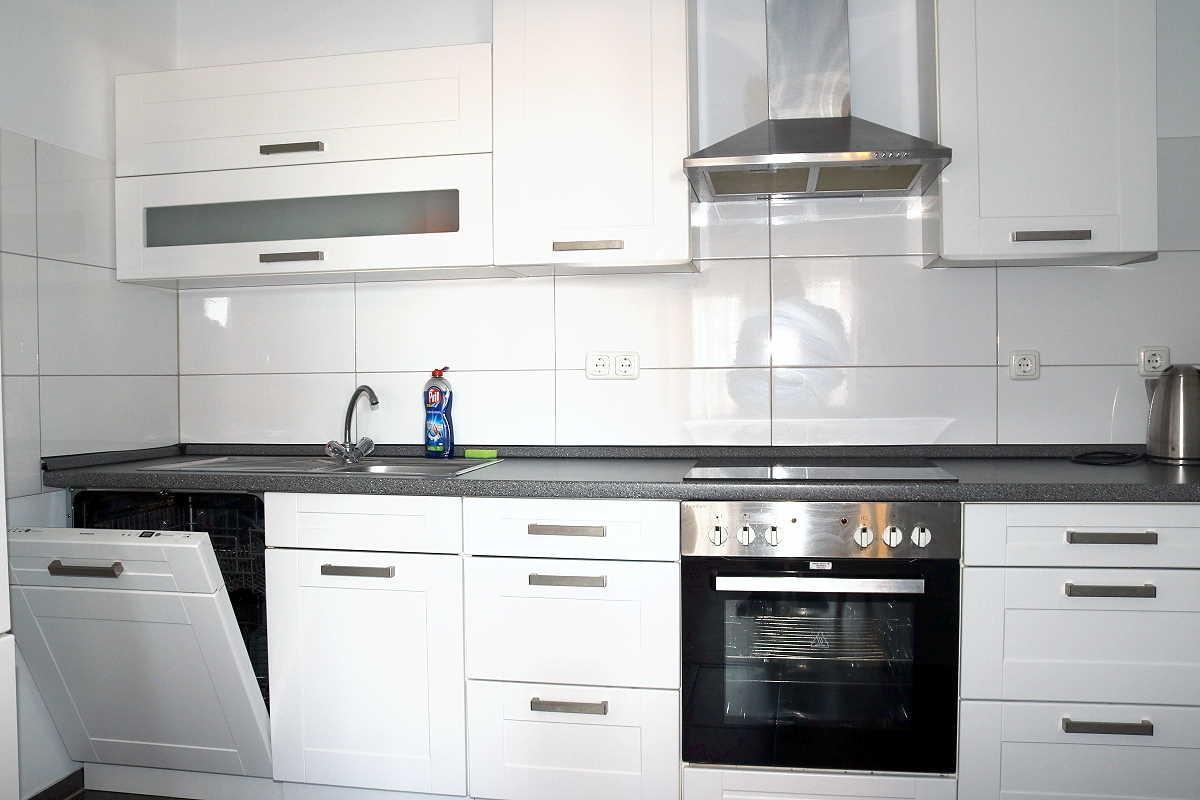 Die Küche ist mit Kühlschrank (3-Sterne-Gefrierfach), Backofen, Ceranfeld, Spülmaschine, Spüle, Kaffeemaschine, Wasserkocher, Tisch und 2 Stühlen komplett eingerichtet. Topfset, Bratpfanne, Geschirr/Besteck/ Tassen/Gläser für 4 Personen vorhanden.