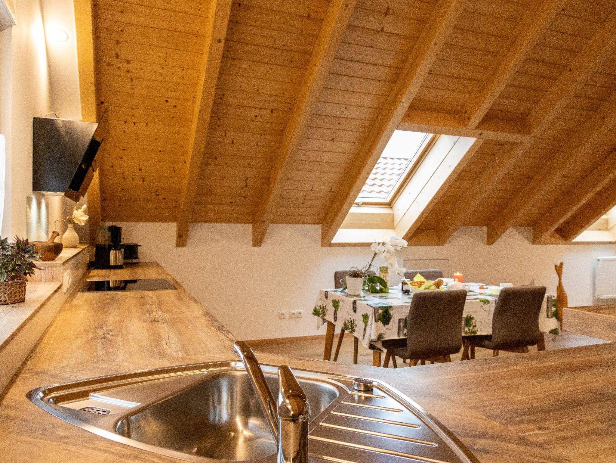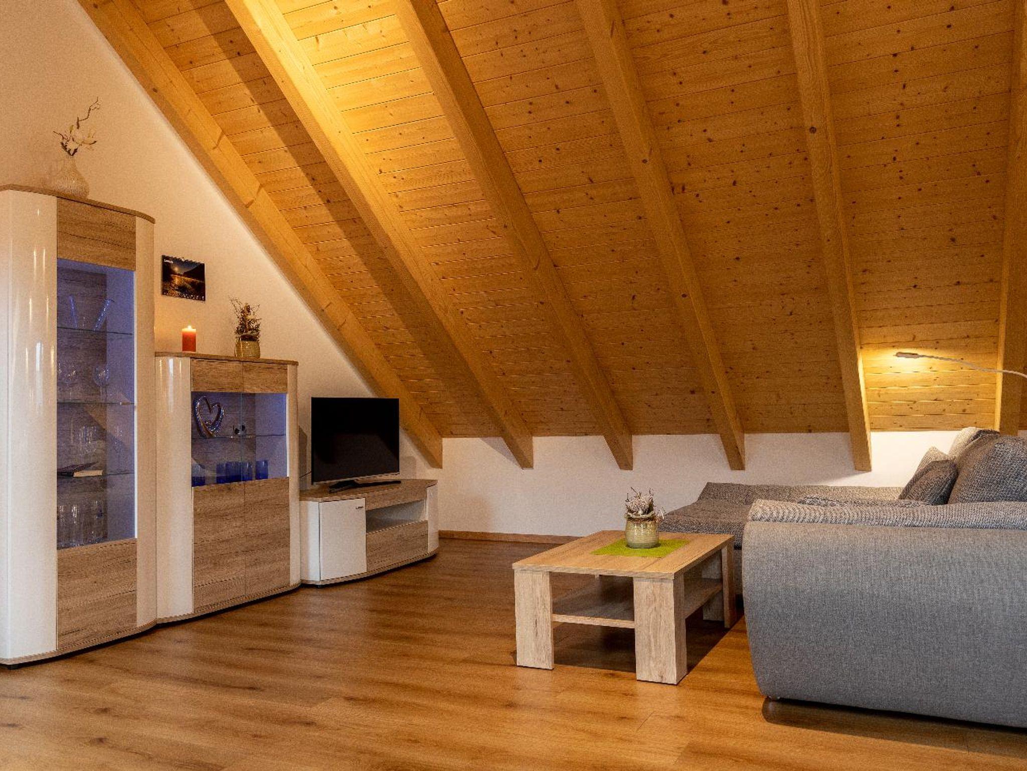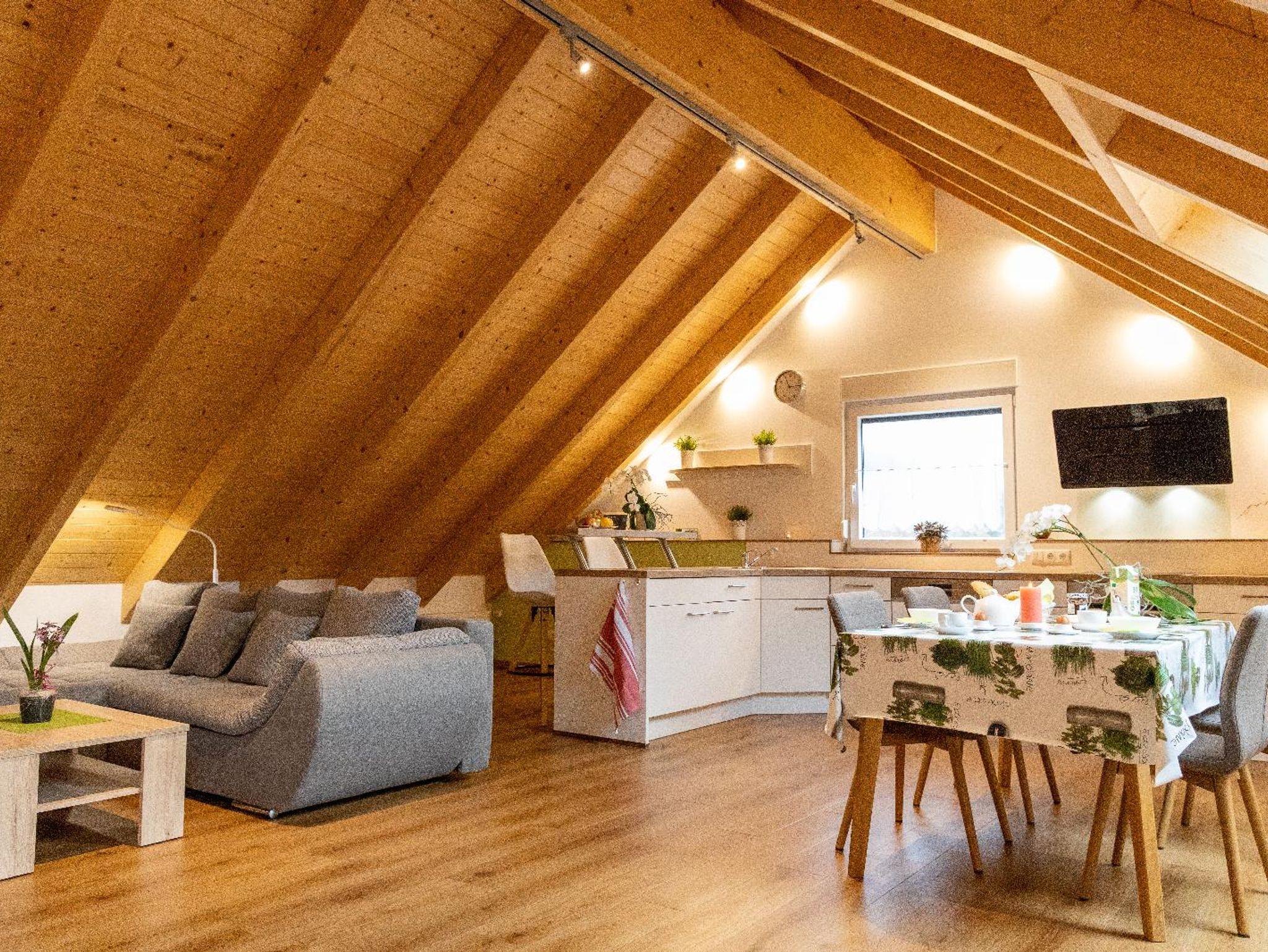 Obergeschoss werden Sie sich rundum wohlfühlen. Unser Sichtdachstuhl aus Holz