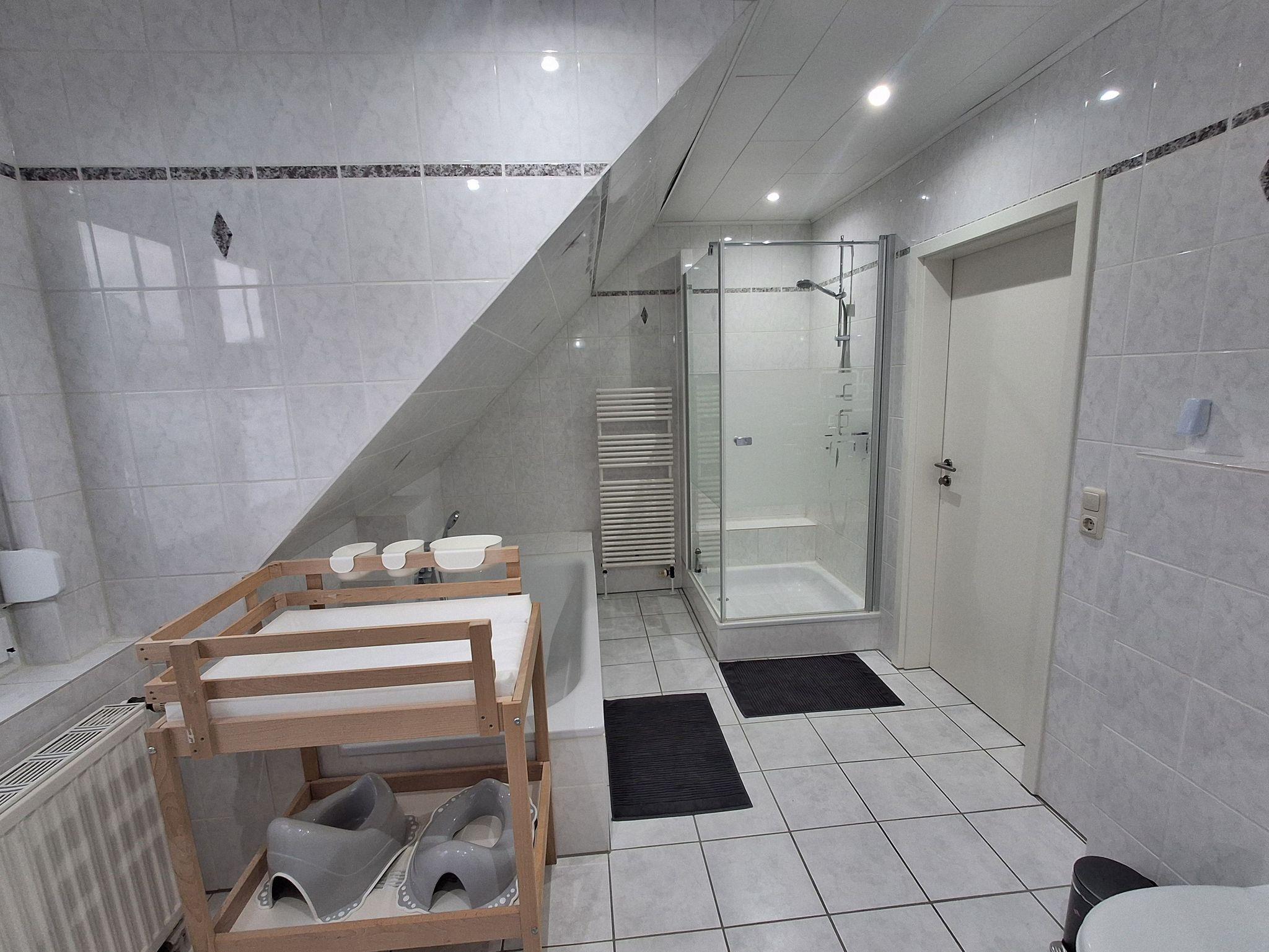 Vollbad mit Dusche und Badewanne, separates Gäste-WC