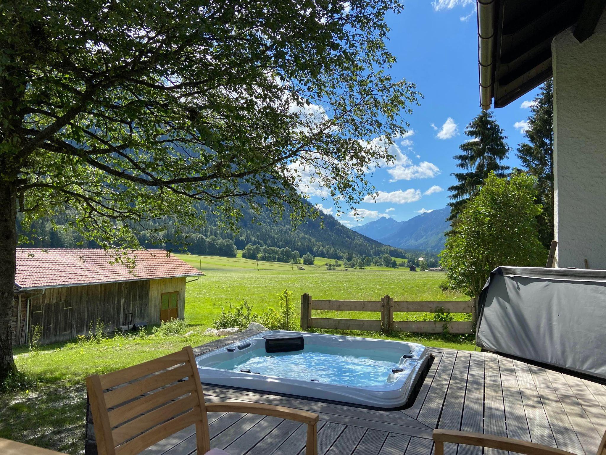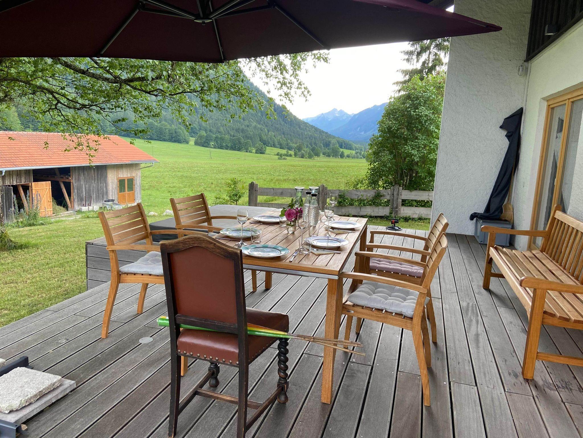 Gemütliches Fereinhaus mitten im Grünen an ruhiger Lage, aber dennoch in kurzer Laufdistanz zu ÖPNV und Einkaufsmöglichkeit. Ca 800m2 Umschwung. 2 Parkplätze hintereinander sind auf dem Grundstück vorhanden. Das 1954 genaute Haus wurde 2019 renoviert mit einer modernen, vollausgestatteten Küche, einer grossen, schönen Holzterrasse mit Gartenmöbeln und komfprtablen Zimmern und einem Schwedenofen im Wohnzimmer. Das Grundstück liegt direkt an der Loipe des König-Ludwig-Laufs. Hunde sind erlaubt und werden mit 7€ pro Tag pro Hunbd in Rechnung gestellt. Bitte beachten Sie auch, dass die Benutzung des Whirlpools nicht im Angebot enthalten ist.