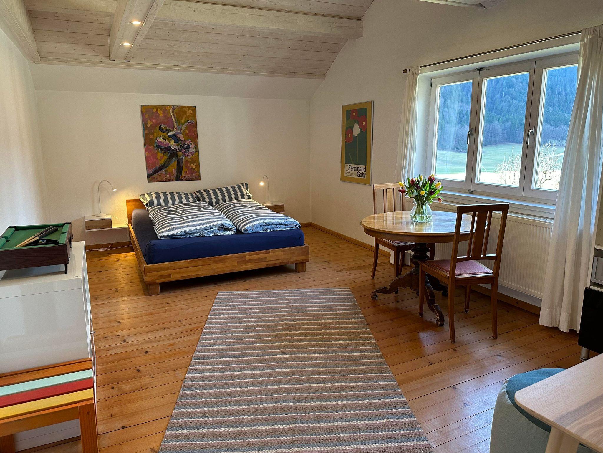 Gemütliches Ferienhaus mitten in Grünen mit Ausblick auf Wiesen und Berge. Grosser Umschwung, Parkplatz, Kaminofen, moderne Küche und viel Privatsphäre. Bis zu zwei Haustiere sind erlaubt und werden pro Haustier mit 30€ pro Aufenthalt in Rechnung gestellt. Rauchen im Haus ist nicht erlaubt. Achtung: Der Preis versteht sich ohne Benutzung des Outdoor Whirlpool. Wenn gewünscht wird dessen Benutzung mit 30€ pro Tag am Ankunftstag in Rechnung gestellt.