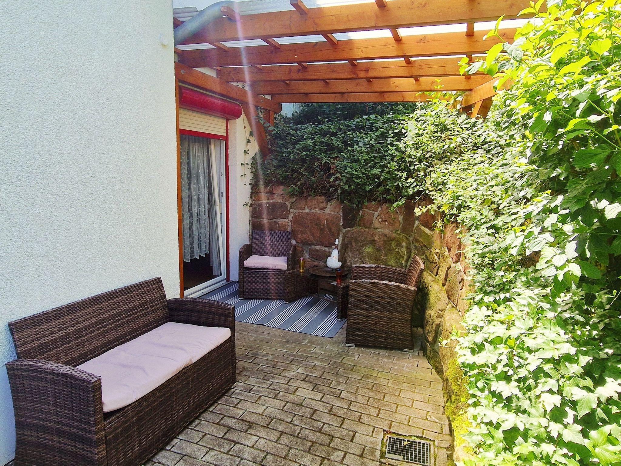 Die Ferienwohnung hat einen Außenbereich mit Grill und Sitz Möglichkeit, wo man die Abende ausklingen lassen kann.