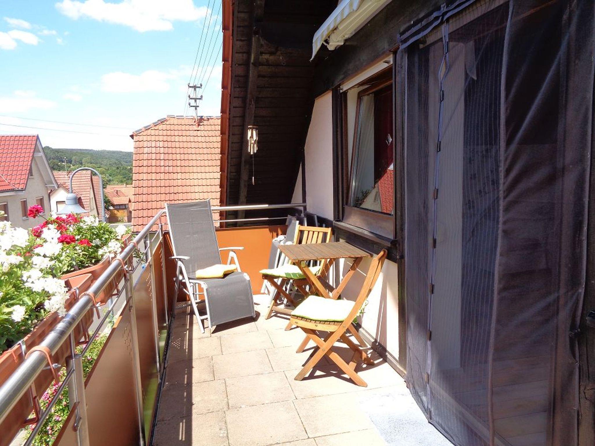 Ihre Ferienwohnung liegt im Dachgeschoß mit Balkon nach Süden in Eußenheim in Main- und Weinfranken im Landkreis Main-Spessart. Sie wohnen in einer gemütlich eingerichteten, mit allem Komfort ausgestatteten Wohnung mit 80m² für 2 - 4 Personen am Dorfrand.