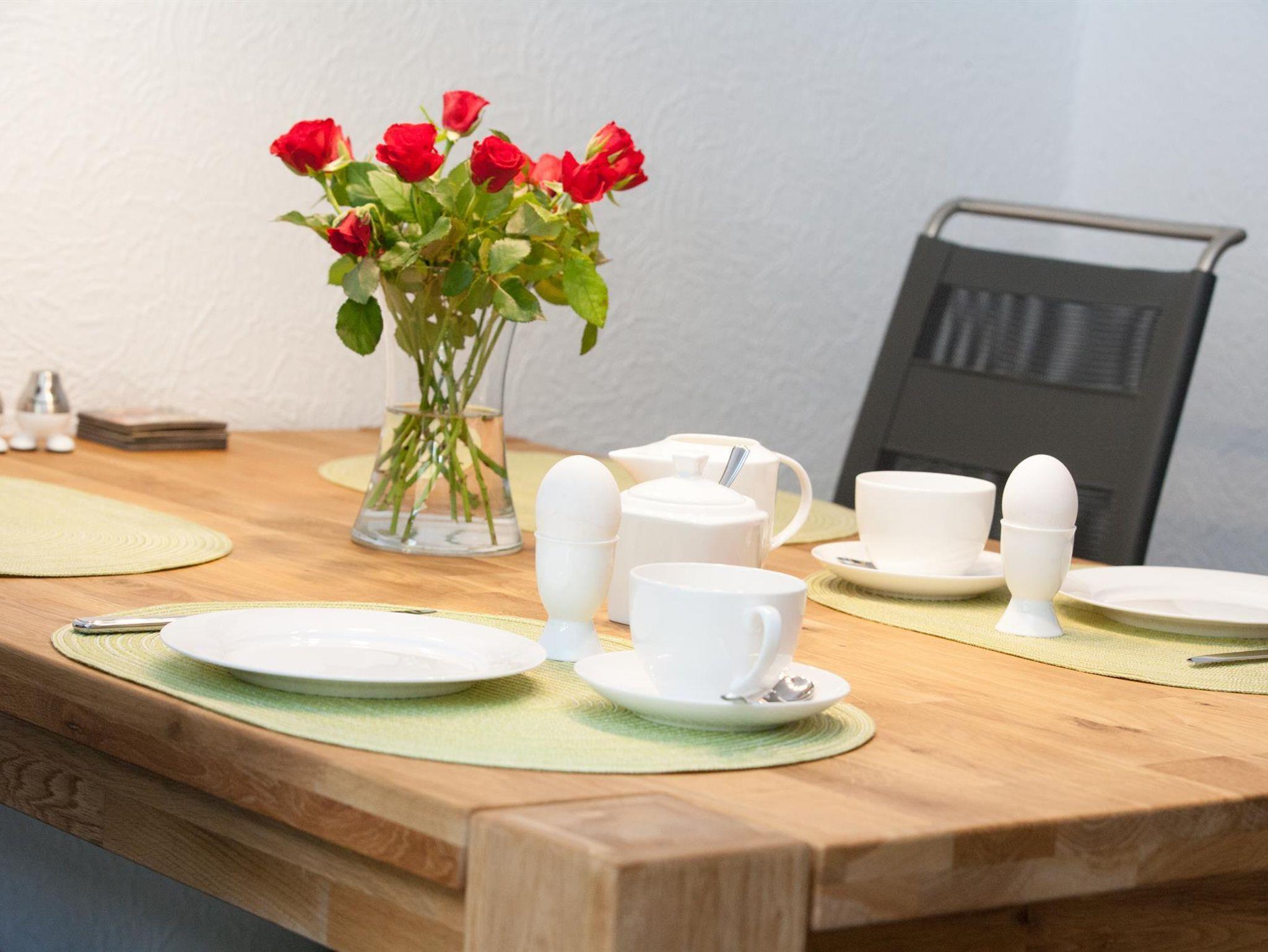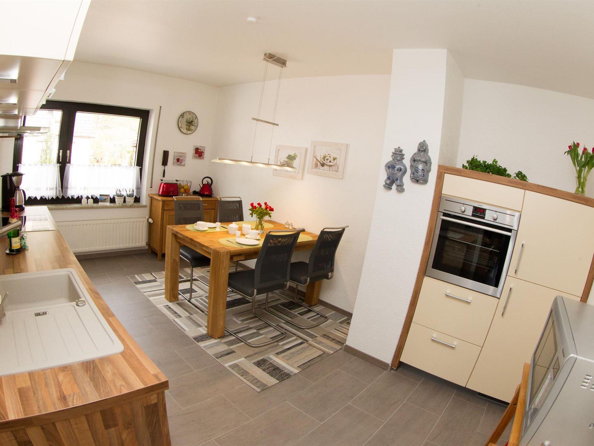 Voll ausgestattete Einbauküche mit allen wichtigen Geräten sowie einer Essgruppe für bis zu 4 Personen.