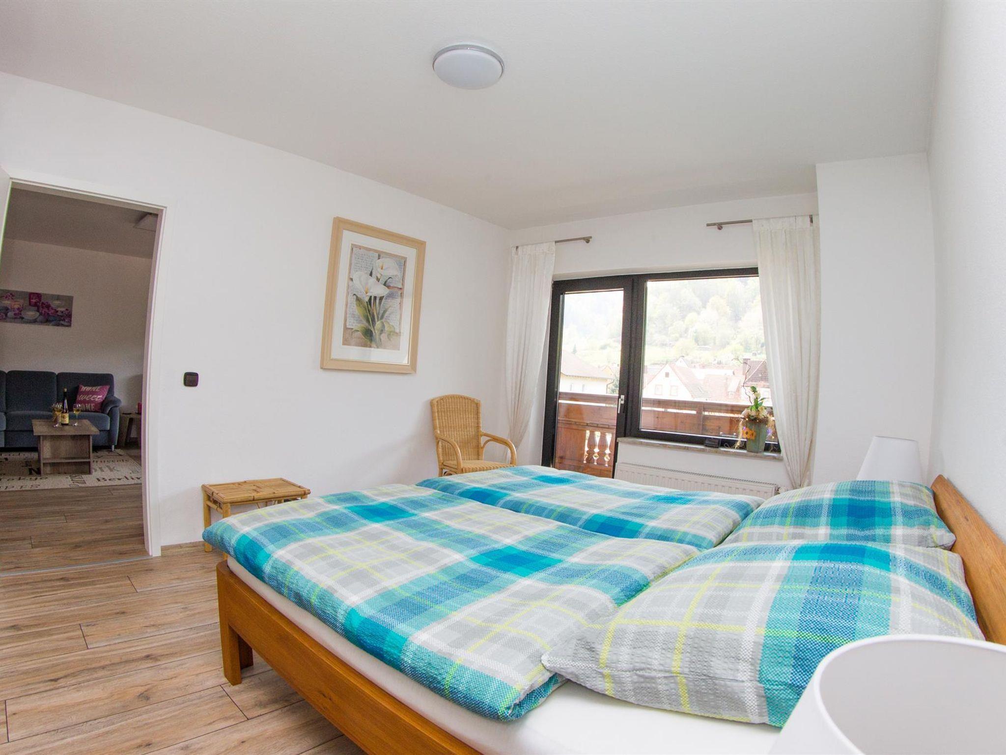 Darüber hinaus stehen Ihnen ein helles Badezimmer, ein ruhiges Schlafzimmer sowie ein großzügiger Balkon zur Verfügung, von dem aus Sie einen traumhaften Ausblick auf den Wald, die Berge und die historische Zisterzienserkirche St. Bernhard genießen können.