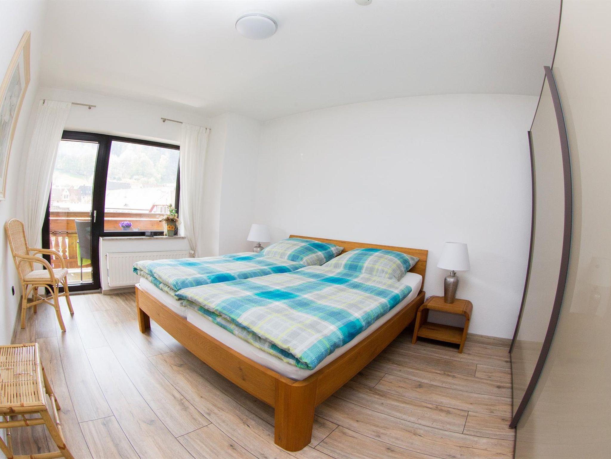 Die ruhige Lage am Waldrand sowie der weite Blick auf die umliegenden Berge bieten ideale Voraussetzungen für einen entspannten und naturnahen Aufenthalt. Die Wohnung umfasst ein großzügiges Wohnzimmer mit einem komfortablen Ecksofa, das sich bei Bedarf in eine zusätzliche Schlafgelegenheit verwandeln lässt. Die moderne, vollständig ausgestattete Küche mit gemütlicher Essecke lädt zum gemeinsamen Kochen und Genießen ein.
