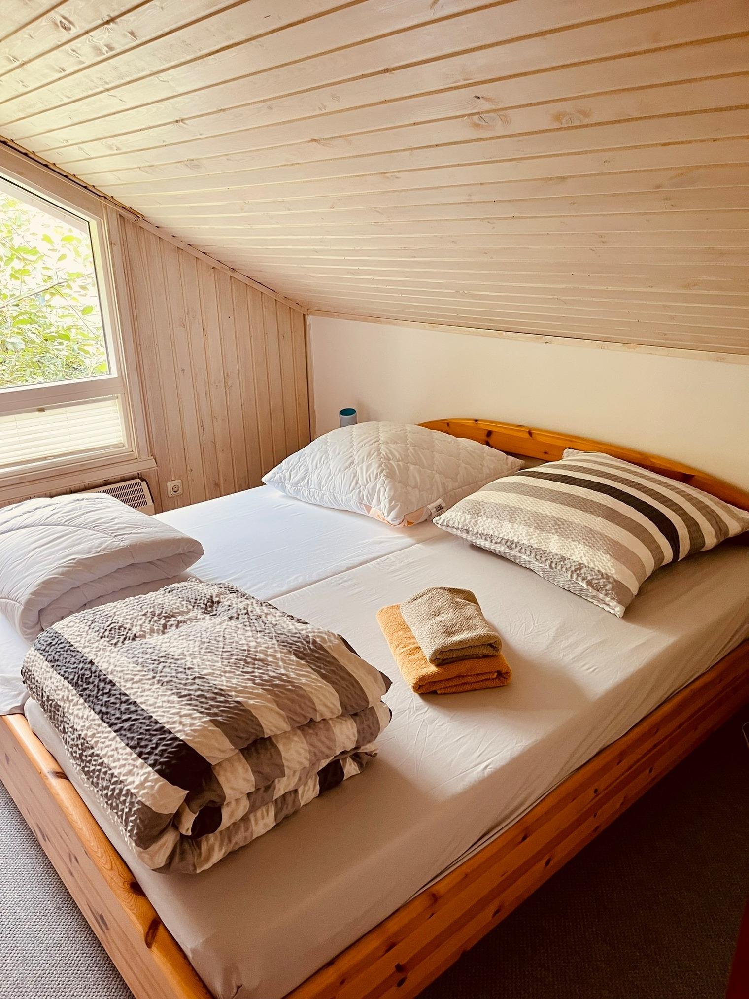 Dank des kostenlosen Parkplatzes direkt am Haus beginnt Ihr Urlaub ganz entspannt. Das Ferienhaus erstreckt sich über zwei Ebenen und bietet Platz für bis zu 5 Personen.