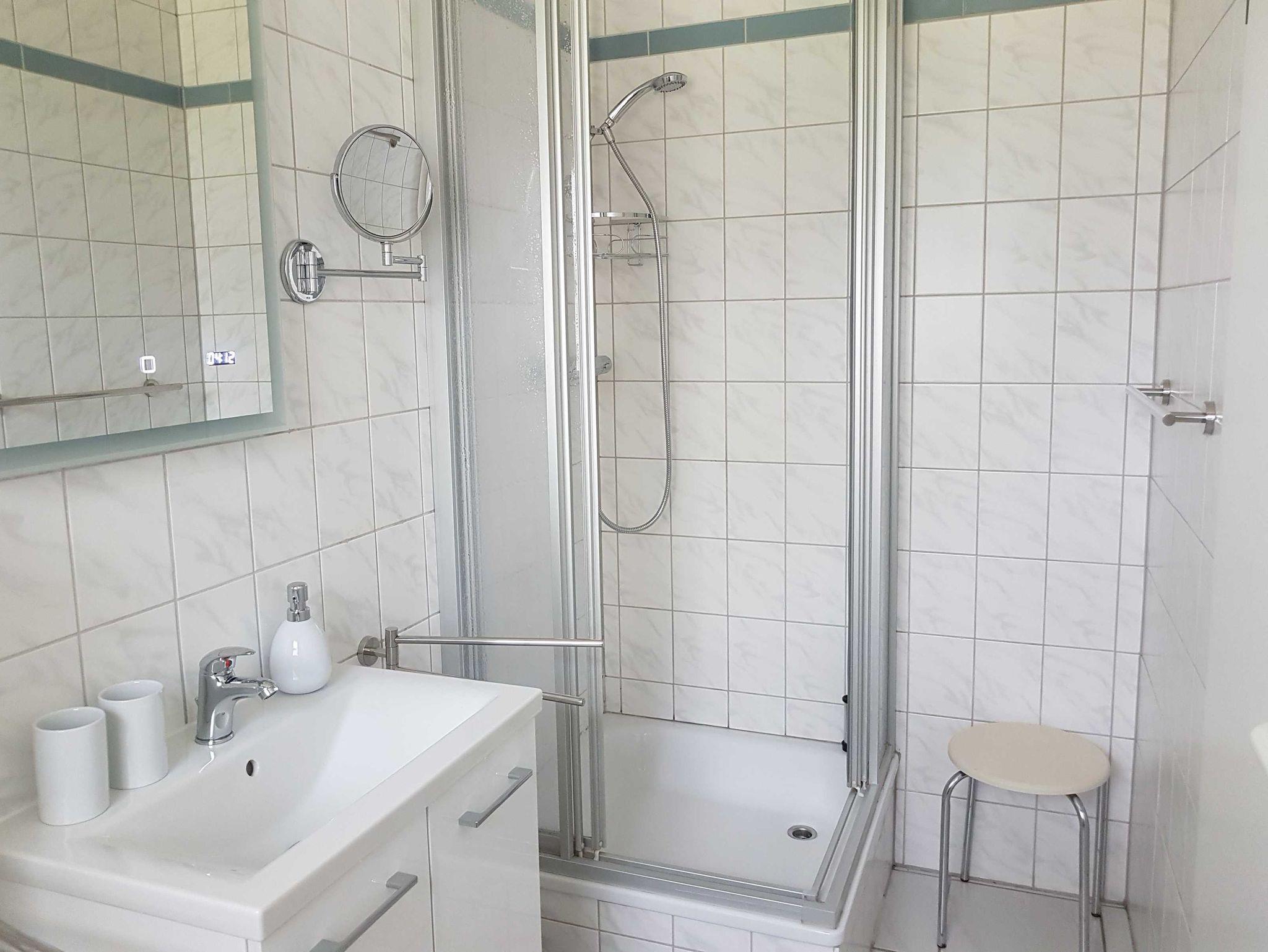 Die Ferienwohnung mit der angrenzenden Terrasse und dem Parkplatz ist mit hellen und freundlichen Möbeln ausgestattet. Die Küche ist offen zum Wohnzimmer und mit allen notwendigen elektrischen Kleingeräten ausgestattet (Backofen, Gefriermöglichkeit, Mikrowelle). Die Wohnung verfügt über 2 Schlafräume. Ein Schlafraum mit Doppelbett und ein Schlafraum mit zwei getrennt stehenden Betten. Das Bad ist mit Dusche und WC ausgestattet. Möchten Sie Ihr Haustier mit in den Urlaub nehmen - kein Problem.