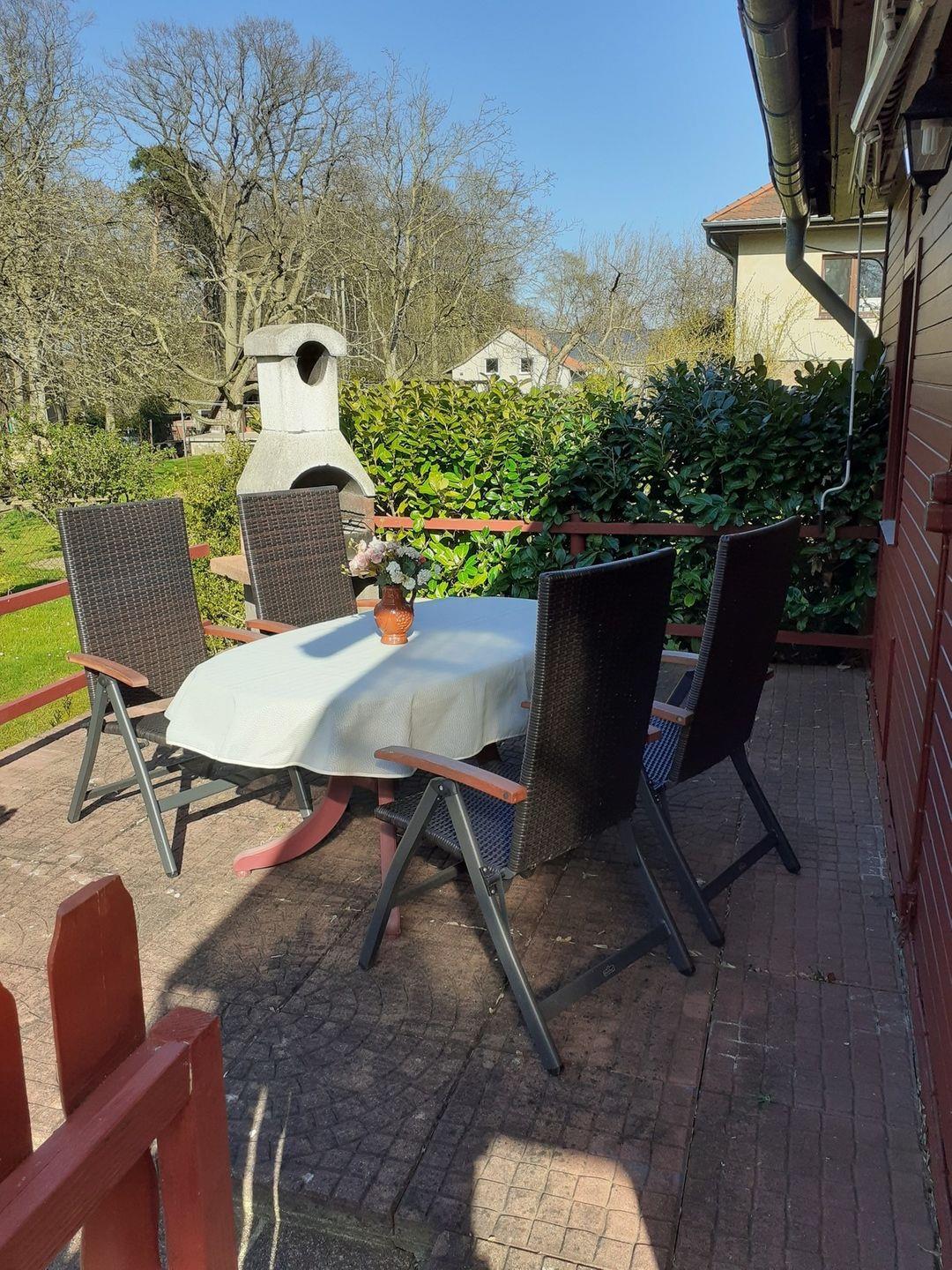 Das 55 m² Ferienhaus (Anbau am Wohnhaus des Vermieters) betreten Sie über den Flur mit Garderobe. Von hier aus gelangen Sie in den Wohnbereich mit einer Couch, zwei Sesseln, einem Tisch, einer Schrankwand, einem TV und einem Radio. In der offenen Küche finden Sie 2 Elektroherdplatten, eine Mikrowelle, einen Minibackofen, eine Kaffeemaschine, einen Toaster, einen Wasserkocher und einen Kühlschrank mit Tiefkühlfach. Das erste Schlafzimmer (Durchgangszimmer zum zweiten Schlafzimmer) ist mit zwei Polsterbetten und einem Kleiderschrank eingerichtet. Mit zwei Polsterbetten und zwei Regalen ist das zweite Schlafzimmer möbliert worden. Das Bad ist mit einer Dusche, einem Waschbecken und dem WC ausgestattet. Zur Wohnung gehören zwei Terrassen mit Gartenmöbeln. Die Terrasse direkt an der Wohnung ist überdacht und bietet Ihnen auch die Möglichkeit bei schlechterem Wetter draußen zu sitzen. Ein Grill ist vorhanden. Auf der Wiese im Garten finden Ihre Kinder Spielmöglichkeiten. Ein Parkplatz für Ihren PKW steht Ihnen in Objektnähe zur Verfügung.