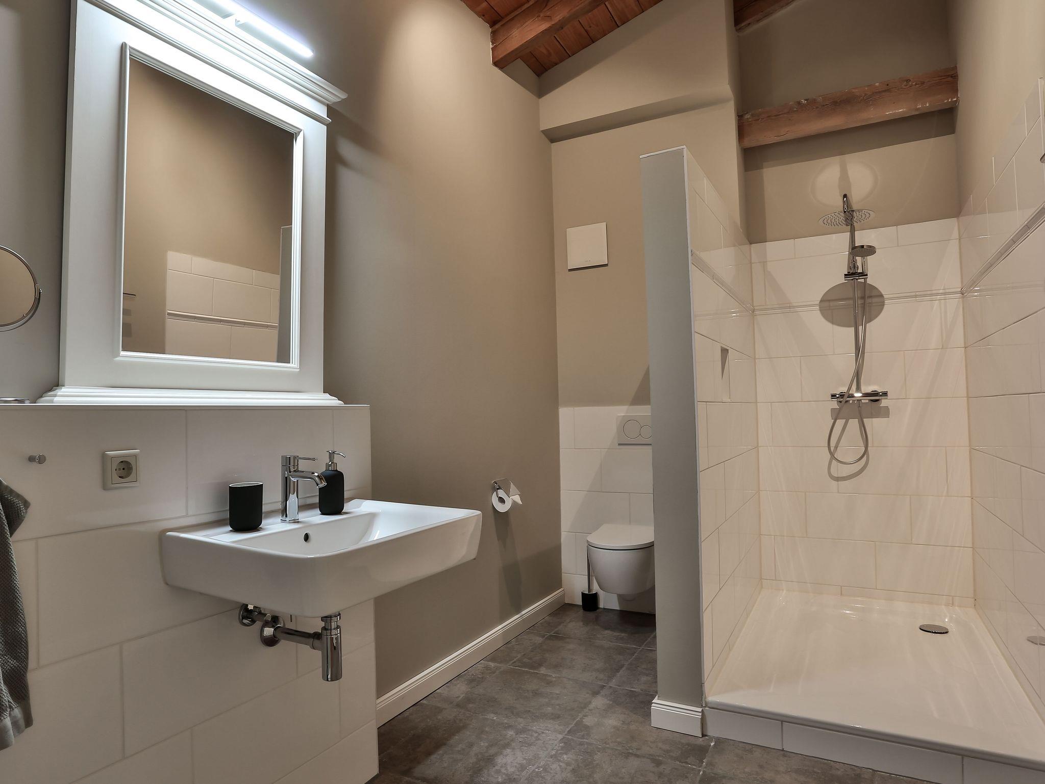 Wie bei allen unseren Doppelzimmern im Obergeschoss empfängt den Gast eine entspannte Wohlfühlatmosphäre. In den ca. 30 qm Fläche, die offen gehalten ist, lässt sich die Seele gern baumeln. Lust auf Fernsehabend? In der bequemen Sitzgruppe kein Problem. Oder doch lieber vom Doppelbett? Der schwenkbare Flach-TV ist von jeder Position einsehbar. Mit einem Buch aus unserer Bibliothek lässt es sich in Liebenberg natürlich auch prima entspannen. Duschen in dem geräumigen Bad ist ebenfalls ein Genuss. Ob Kurztrip oder längerer Aufenthalt. Hier fühlen Sie sich gleich zuhause. Selbstverständlich steht auch hier kostenloses WLAN sowie kostenfreie Parkplätze zur Verfügung. Eine Aufbettung mit Zustellbett ist möglich.