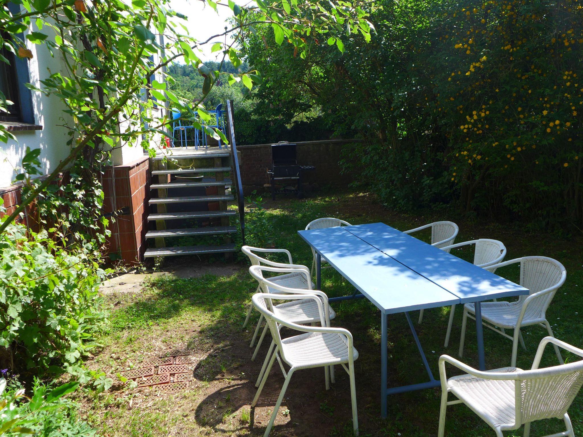 In the rear room no. 4.a there are two single beds (1x2m; 0.90x1.90m). There are also two sofa beds (1.40m x 2m; 2x 0.80m x 2m). There is a folding baby bed and 2 children's mattresses. The 2 bathrooms have level-access showers, one of which is disabled-friendly with a folding support handle and wheelchair-accessible washbasin. The eat-in kitchen has direct access to the south-facing garden. It is equipped with a dishwasher, cooker with ceramic hob and oven, fridge with freezer compartment and complete kitchen equipment for 6-12 people. There are two large tables and 14 chairs. You can watch TV, listen to music and read in the living room with a settee. Well-stocked bookshelf, many art and nature magazines. Original art and handicrafts from all over the world throughout the flat. The flat is accessible for people with walking difficulties through a door with a single step. Suitable for wheelchairs to a limited extent. The guest garden is separated from the street and the property by walls and trees. You can stay there undisturbed and small children can play there safely. A table and chairs await guests, deckchairs, barbecue and rotary clothes dryer are also available. Children's playground right next door. Internet connection, W-Lan and, if required, a laptop are available free of charge to access the Internet. There are swimming pools 8 km (Frankenberg) and 10 km (Medebach) away, the Edersee is 12 km away. Sachsenberg is situated between two rivers (Nuhne and Orke) and has a pond with Kneipp basin. Courses ranging from wild herb cookery (insider tip: Sachsenberg Green Sauce with 14 herbs) to South Indian cuisine and art and culture topics on request. I would be happy to share my insider tips for the region with you.
