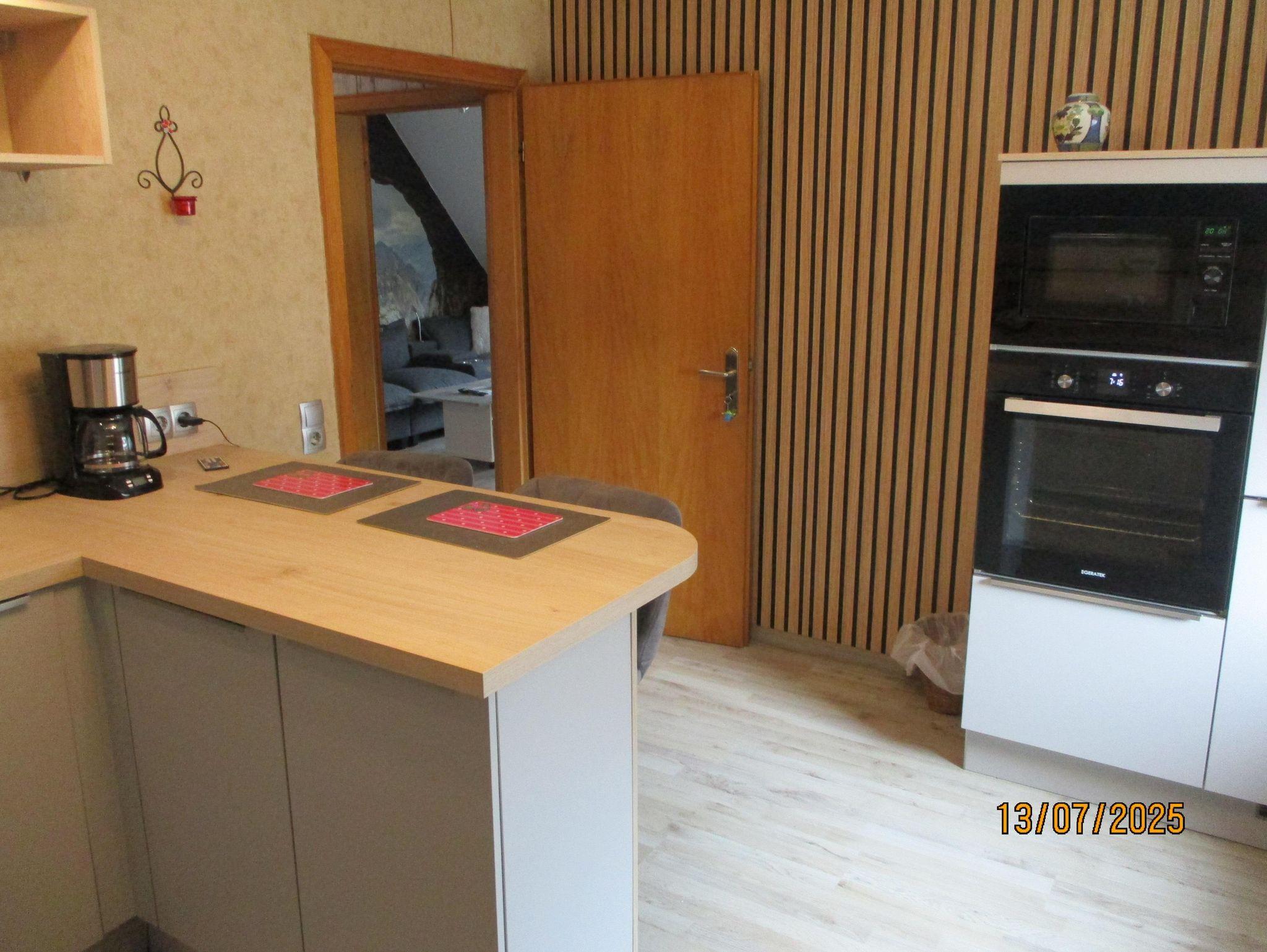 Die gemütliche 2,5-Zimmer-Ferienwohnung im 1. Stock eines gepflegten Einfamilienhauses bietet auf 50 m² Platz für bis zu drei Erwachsene und ein Baby oder Kleinkind. Sie ist optimal geschnitten, lichtdurchflutet und verfügt über Laminatböden, ein modernes Bad mit Dusche und Badewanne sowie eine neue Einbauküche mit Mikrowelle, Wasserkocher, Kaffeemaschine, Toaster, Geschirr und allen nötigen Utensilien.ES ist vorhanden ein schöne Wohnzimmer mit angrenzendem Schlafzimmer mit Doppelbett die durch Türbogen verbunden sind.Desweitere ist ein seberates zimmer mit einzelbett vorhanden.Bettwäsche, Handtücher, Kinderbett und Hochstuhl sind vorhanden. Ein abschließbarer Fahrradunterstellplatz und Parkmöglichkeiten direkt am Haus stehen zur Verfügung. Die ruhige Lage inmitten der Natur lädt zu erholsamen Spaziergängen und Ausflügen ein – ideal für Feriengäste und Monteure.