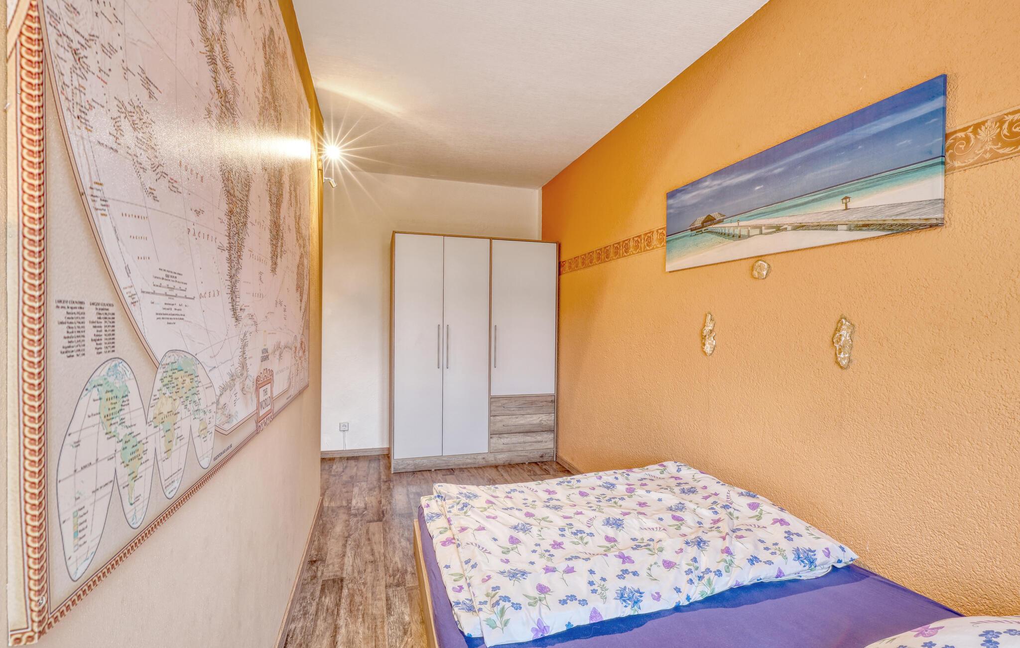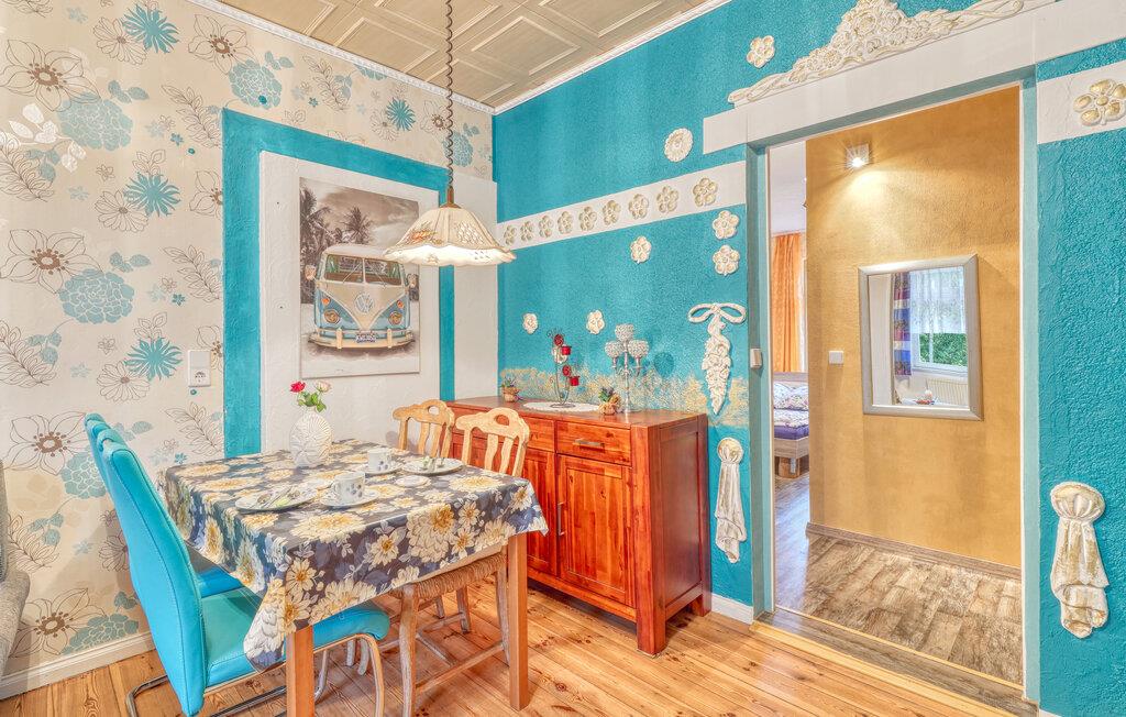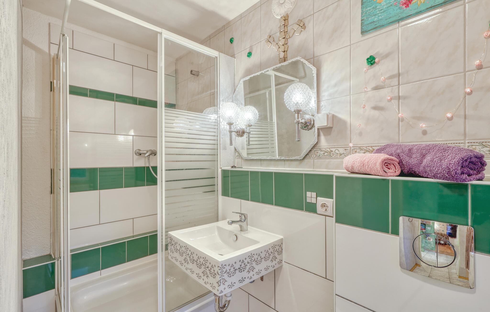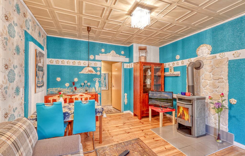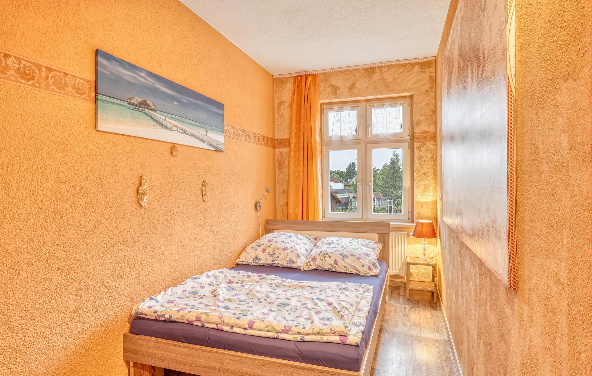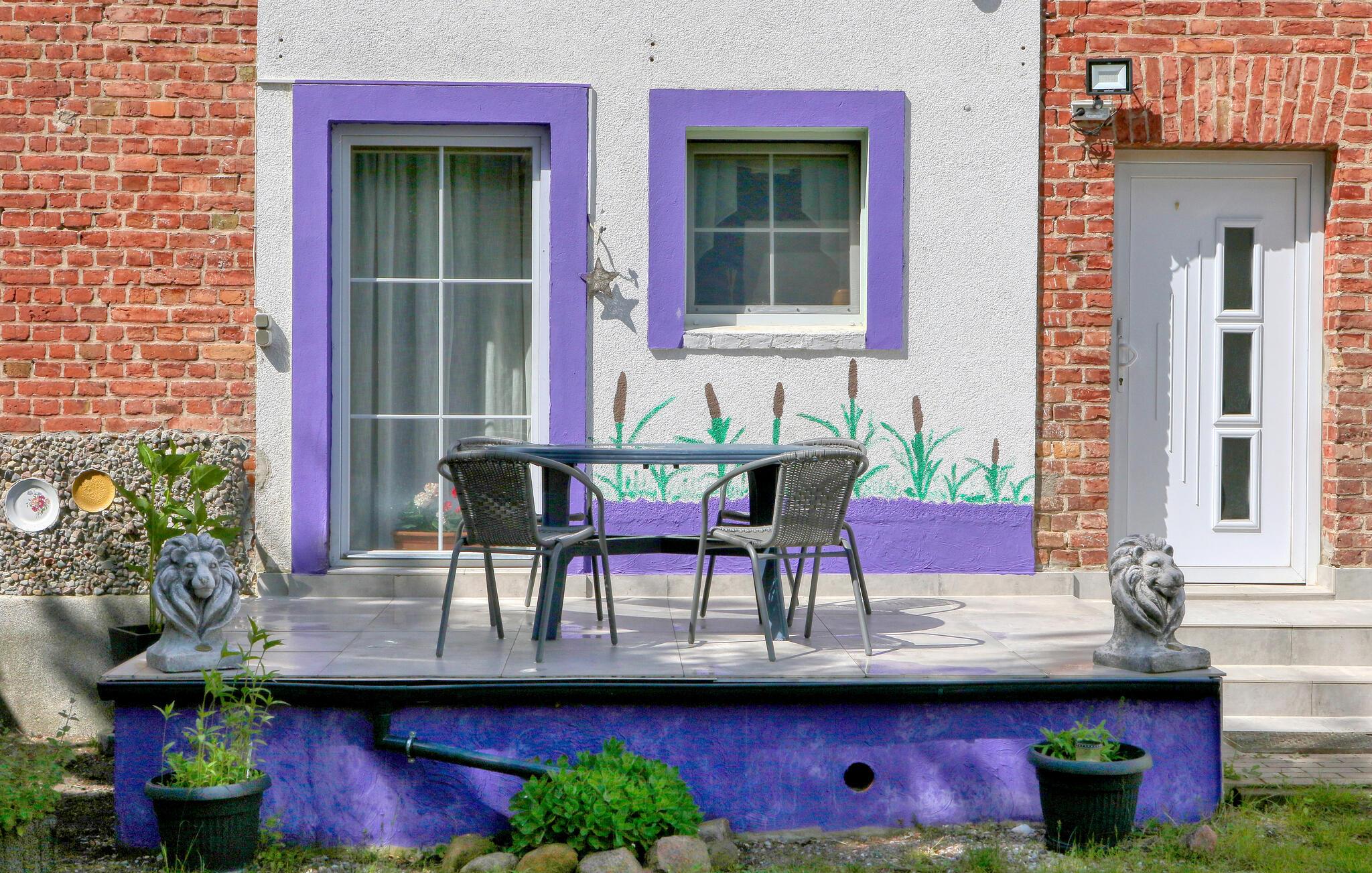 De tre ferielejligheder ligger i ejerboligen på en helt indhegnet grund på omkring 2.500 kvadratmeter rolig beliggenhed i Himmelpfort og har separat indgang. Der er omkring 500 meter til næste svømmeplads. En restaurant og et minimarked ligger også kun få hundrede meter væk. Større butikker og en togstation ligger cirka 8 km væk. Der er også et separat sommerhus (DZV452) på ejendommen. Alle lejligheder har WiFi, opholdsområde på ejendommen med grill, liggestole, cykelrum, bordtennisbord, bålplads, gynge og lille børnezoo samt parkeringsplads. ledig. En robåd er tilgængelig efter anmodning mod et gebyr, og en barneseng og høj stol er også tilgængelige efter anmodning. Slutrengøring og sengetøj er inkluderet i den samlede pris. Betales lokalt: el og vand efter forbrug, robåd (hvis relevant) 10 EUR/dag. Medbring venligst dine egne håndklæder. Kæledyr er ikke tilladt i denne ejendom. Den cirka 45 kvadratmeter store ferielejlighed kan rumme op til 4 personer (inklusive 2 ekstra senge) og ligger på husets øverste etage (tilgængelig via trapper). Lejligheden er indrettet med opholdsstue med polstrede møbler (sovesofa), pejs, fladskærms-tv, radio, dvd-afspiller og åbent køkkenalrum med el-komfur og ovn, køleskab med fryser, diverse små køkkenmaskiner og spiseplads som f.eks. samt et separat soveværelse med dobbeltseng (1,40 m bred) og 1 badeværelse med toilet, bruser og hårtørrer. Lejligheden har elvarme og insektbeskyttelse foran vinduerne. Rygning er kun tilladt udendørs. Barneseng og høj stol er kun tilgængelige efter anmodning! En mikrobølgeovn er tilgængelig, hvis det kræves, men bruges ligeligt af alle gæster i de forskellige lejligheder. Himmelpfort er et statsanerkendt feriested i Brandenburg og ligger mellem flere søer. Himmelpfort er en idyllisk landsby midt i naturparken Uckermärkische Seen med små butikker, restauranter og mange turistattraktioner. Det drejer sig blandt andet om klosterhaven med interessant information om lægeplanter og urter, passagerbådsture på vandet, padle- og bådture, tømmerflådeture, trolleyture og lystfiskere får også noget for pengene i de vandrige omgivelser. Vandvandrere kan planlægge deres ture i regionen via de forskellige søer op til Havel og dermed længere nedstrøms. Langdistancecykelstien Berlin-København går gennem byen Himmelpfort er også kendt som en julelandsby langt ud over landets grænser. Hvert år i adventstiden valfarter mange besøgende til byen for at besøge julemanden og de julemarkeder, der finder sted. Det officielle juleposthus ligger også i Himmelpfort. Hundredtusindvis af ønskelister fra børn ankommer der hvert år. I det omkringliggende område er der større byer som Fürstenberg/Havel (ca. 10 km) eller Lychen (ca. 12 km), som har mange butikker, caféer, restauranter og seværdigheder at byde på.