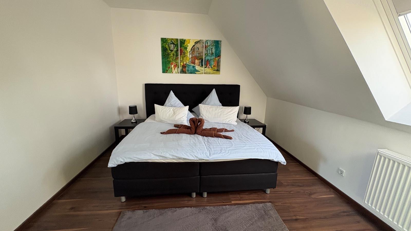 Die Unterkunft eignet sich für bis zu 4 Personen. Im kombinierten Wohn- und Schlafbereich verfügt die Ferienwohnung über ein Boxspring-Doppelbett und eine Schlafcouch.
