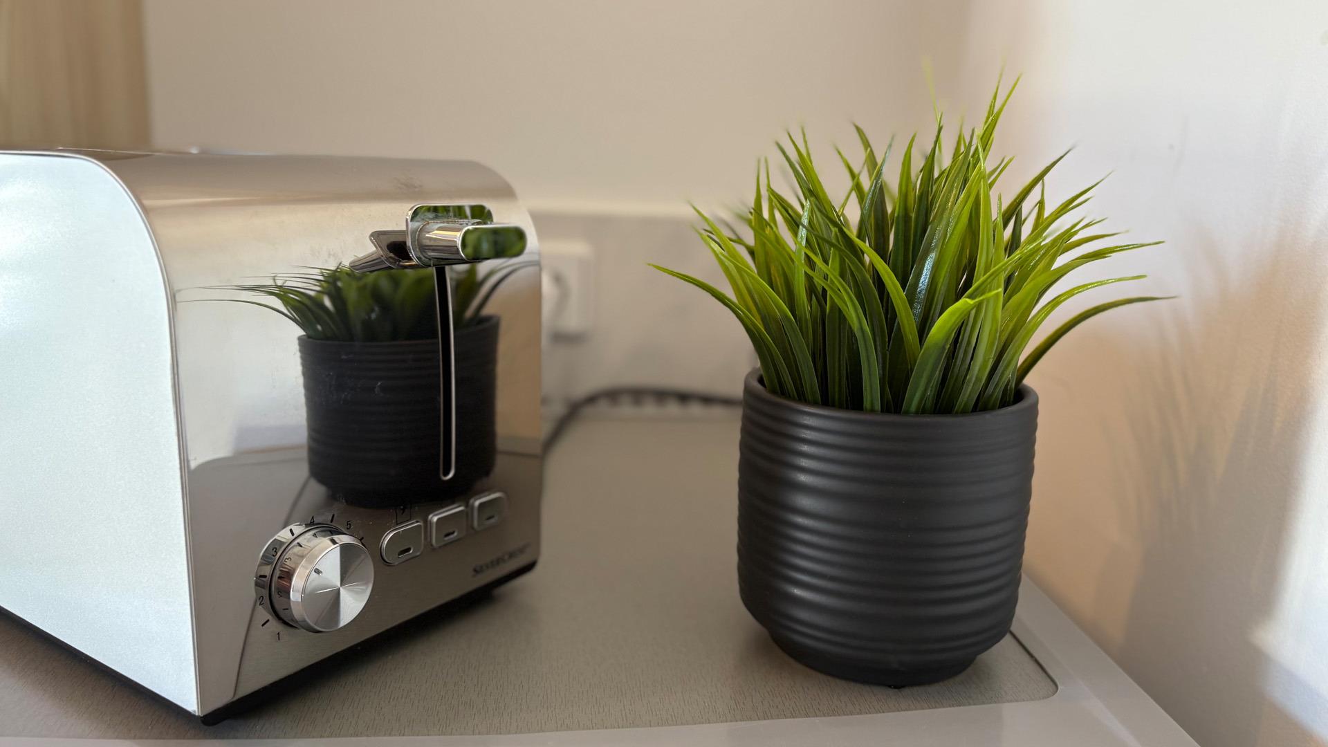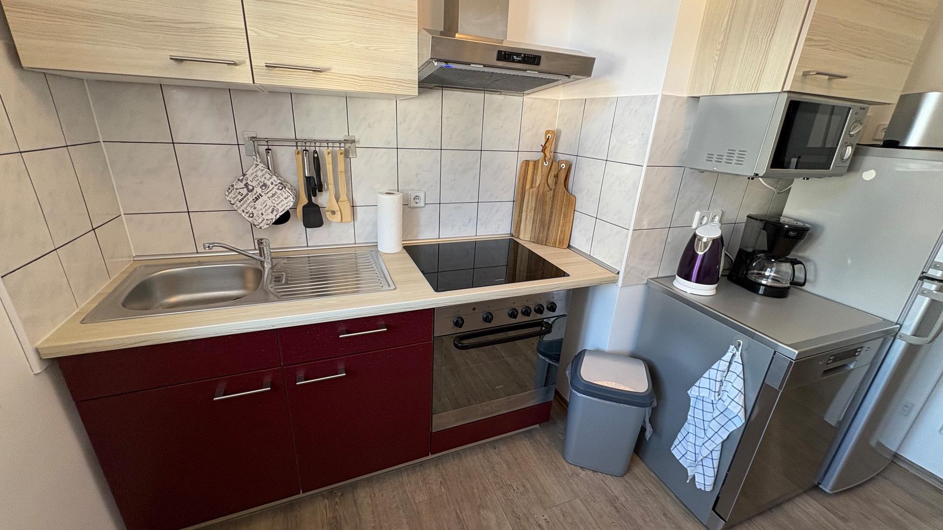 Die moderne Küche ist mit allen notwendigen Geräten ausgestattet, darunter ein Kühlschrank, eine Mikrowelle, ein Kochfeld, ein Backofen und eine Kaffeemaschine, sodass Sie sich während Ihres Aufenthalts bequem selbst verpflegen können. Im Badezimmer erwartet Sie eine Badewanne.