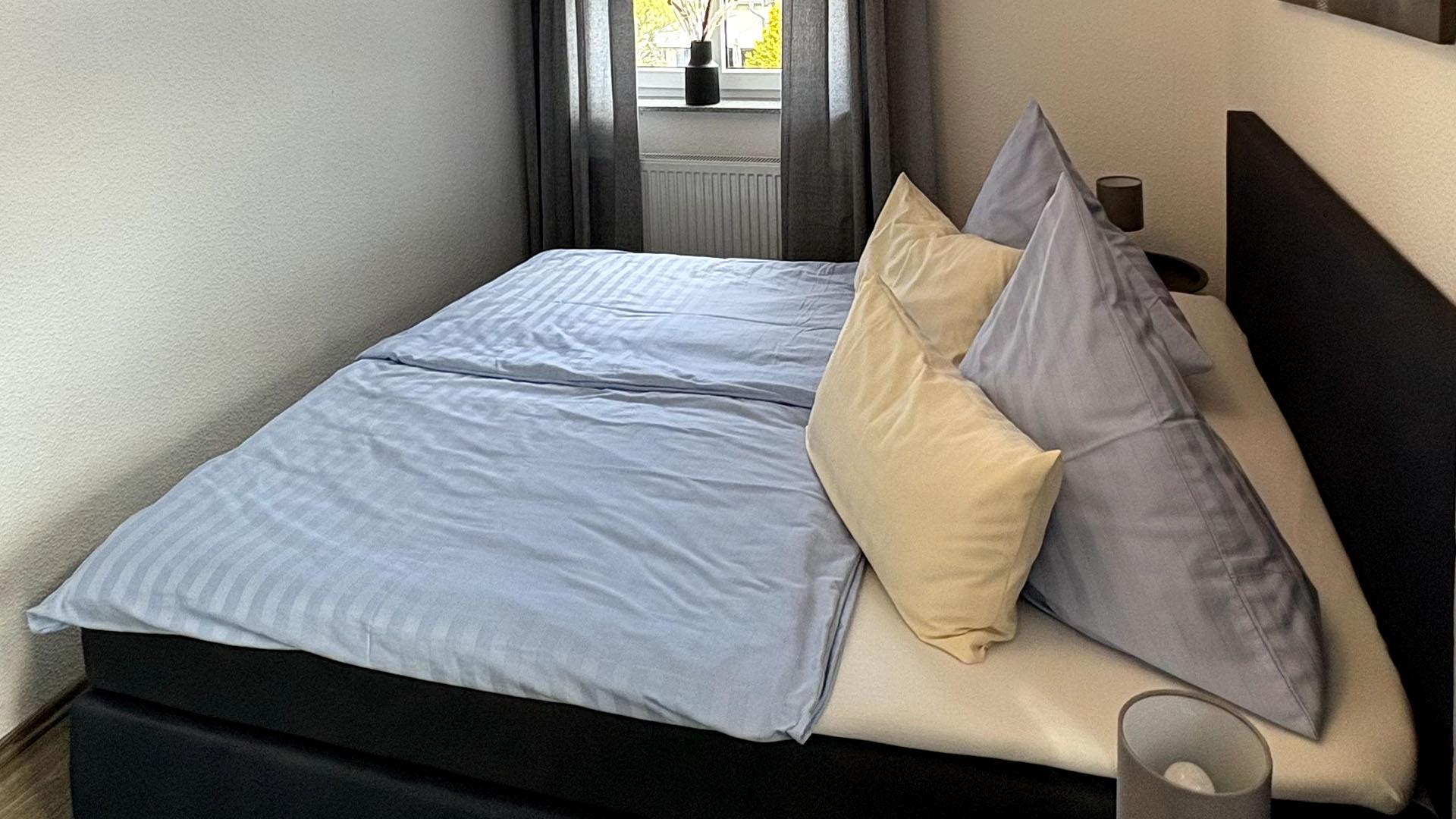 Die Unterkunft eignet sich für bis zu 6 Personen. In den zwei Schlafzimmern finden Sie jeweils komfortable Boxspring-Doppelbetten, und im Wohnzimmer steht eine praktische Schlafcouch für zusätzliche Gäste zur Verfügung.