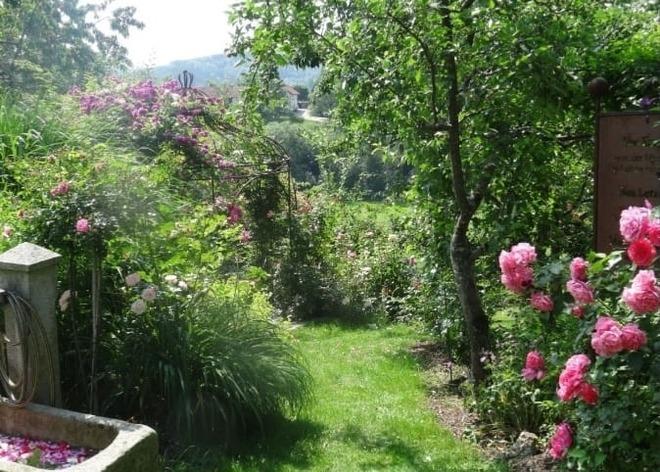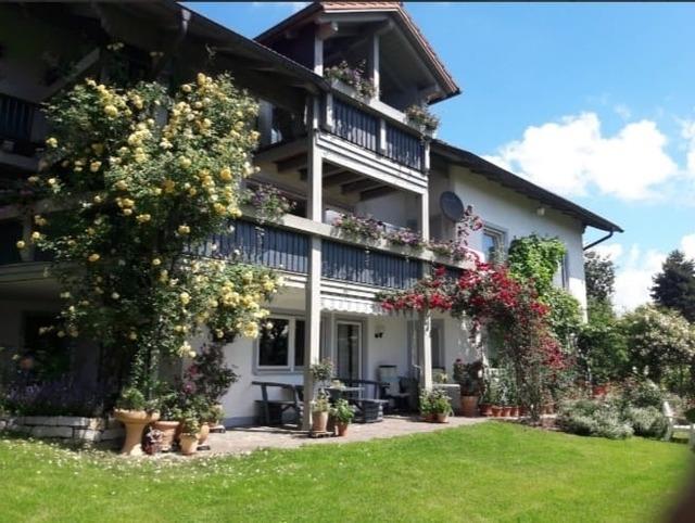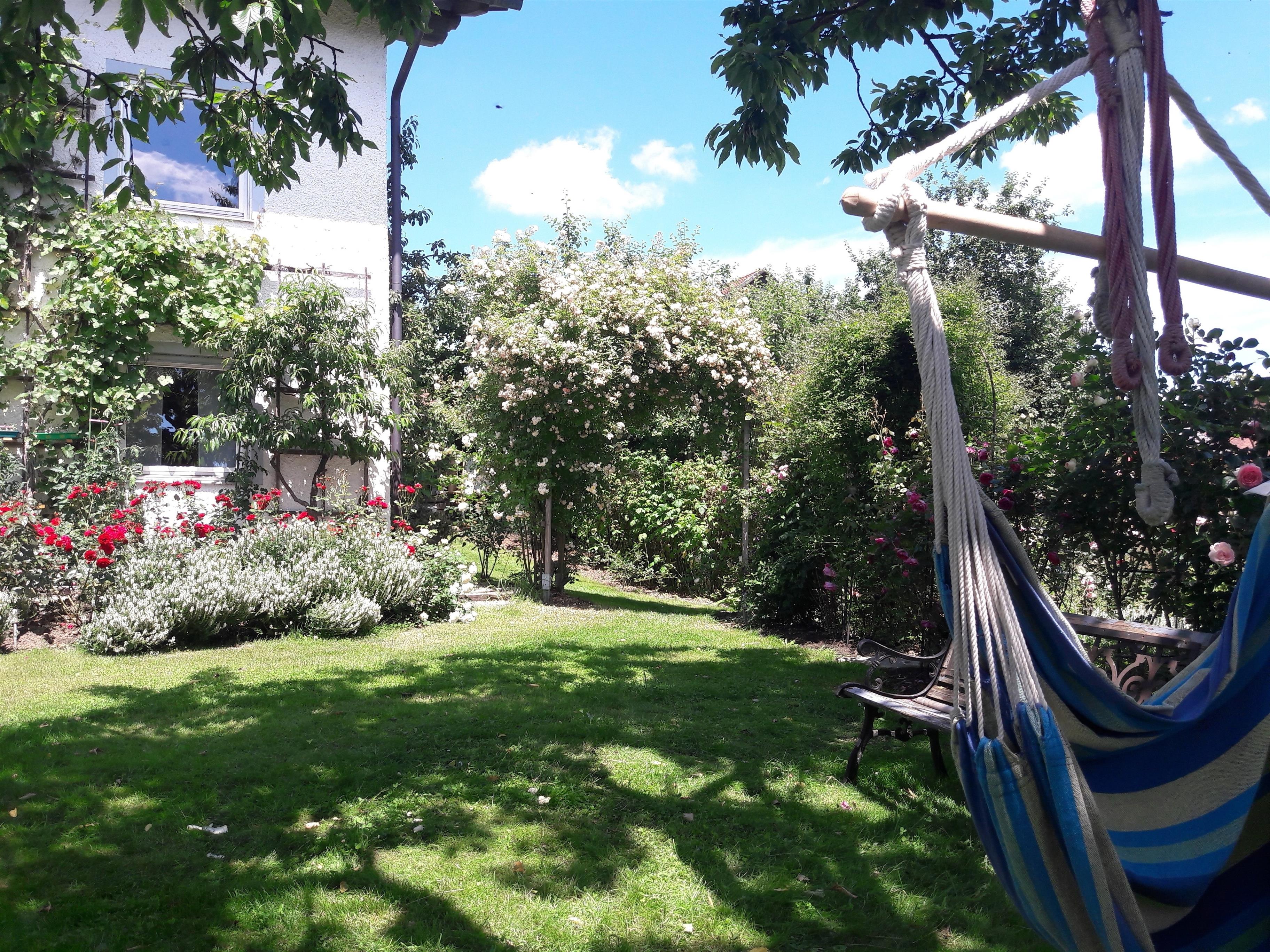 Eine zweite schön eingerichtete 4 Sterne Ferienwohnung "Rosengarten" befindet sich im UG mit großer Terrasse und direktem Zugang zum großen Rosengarten.