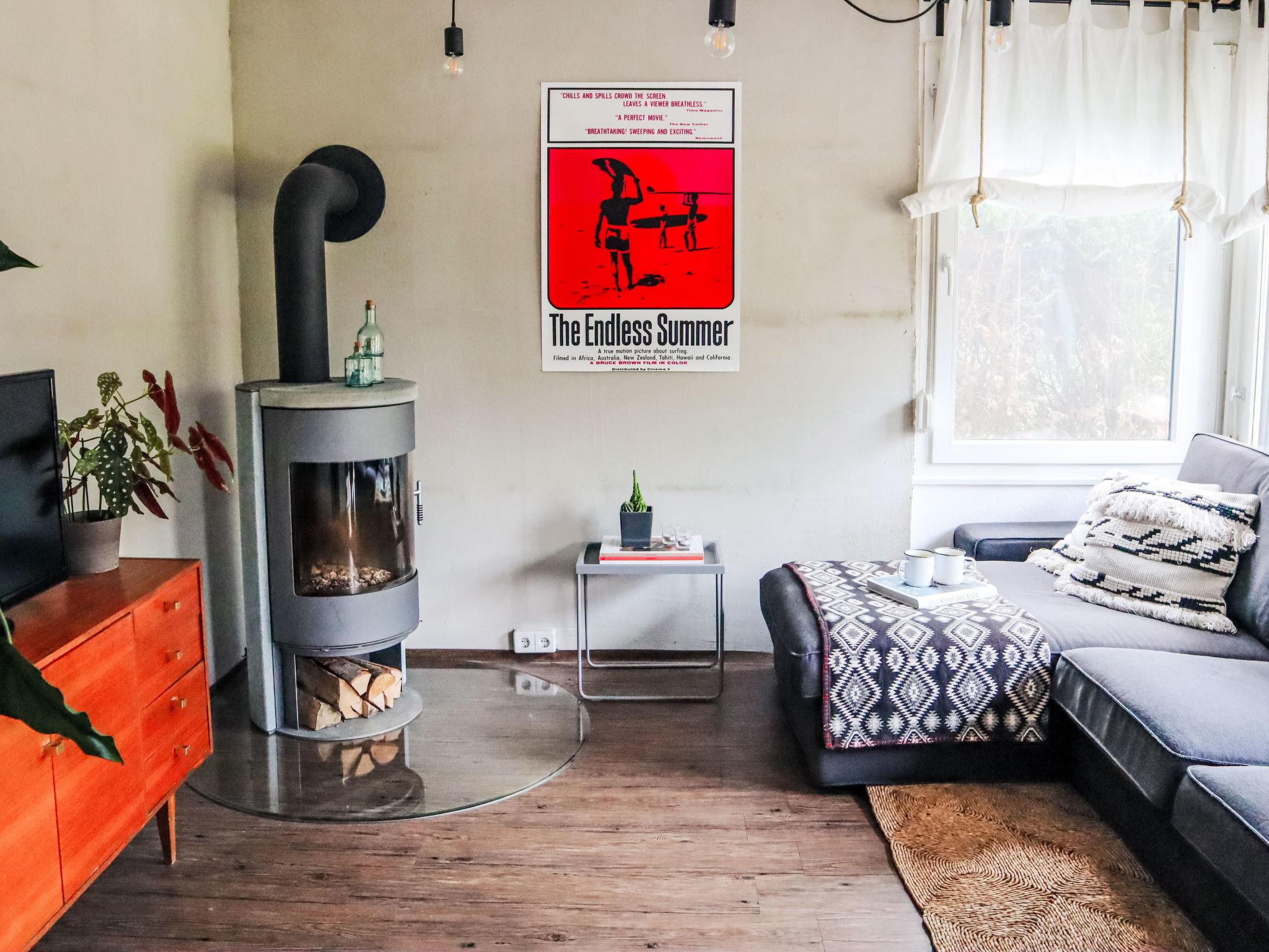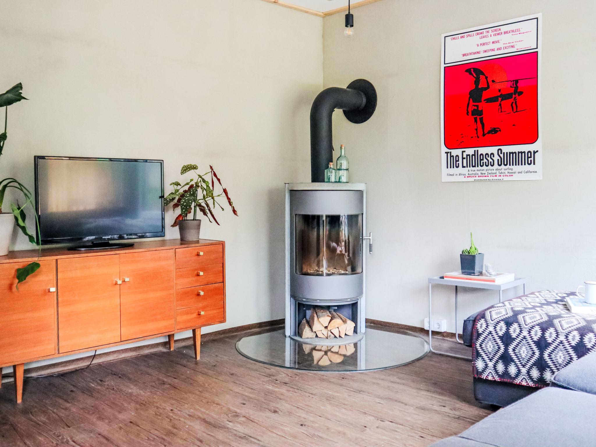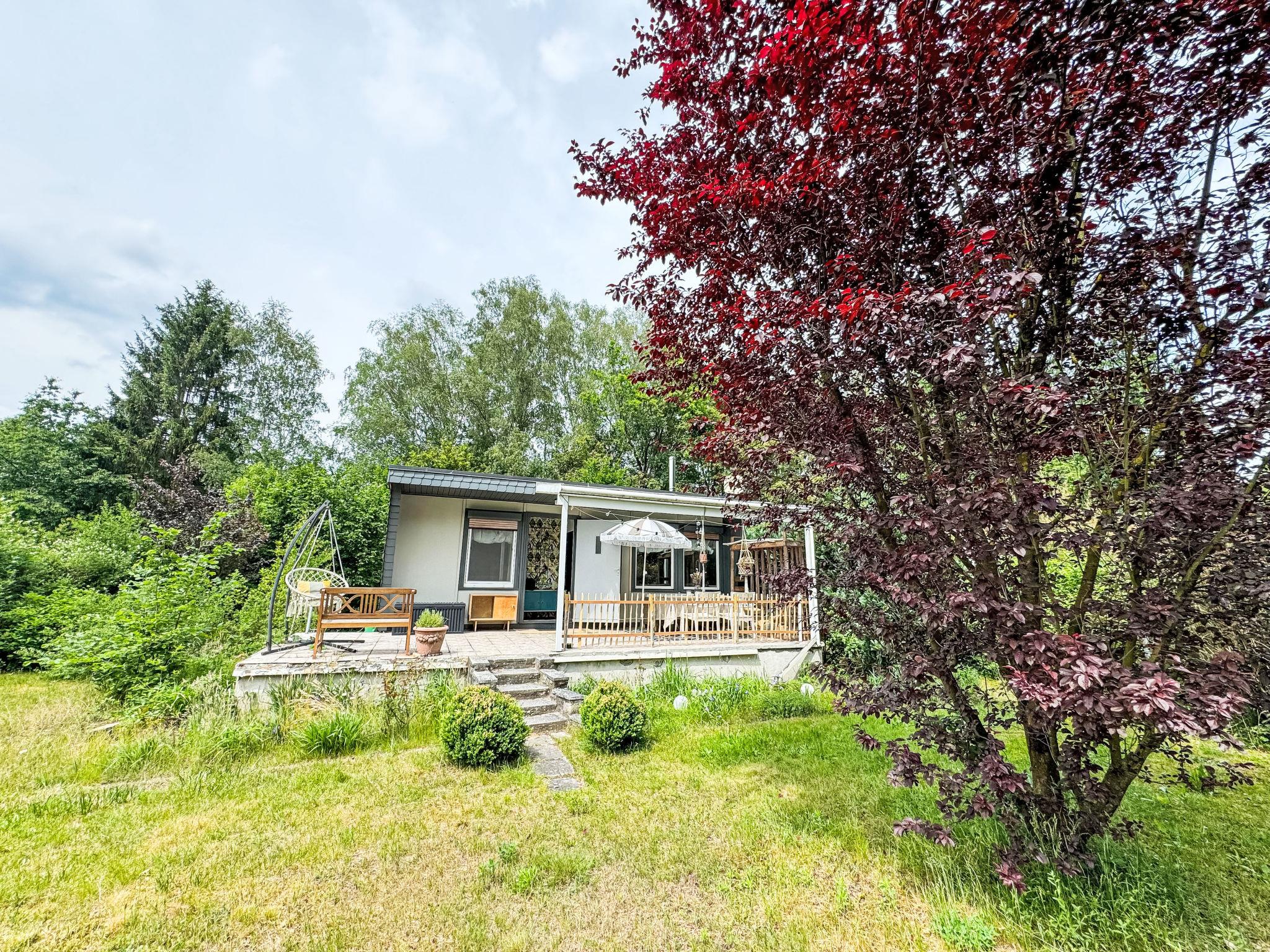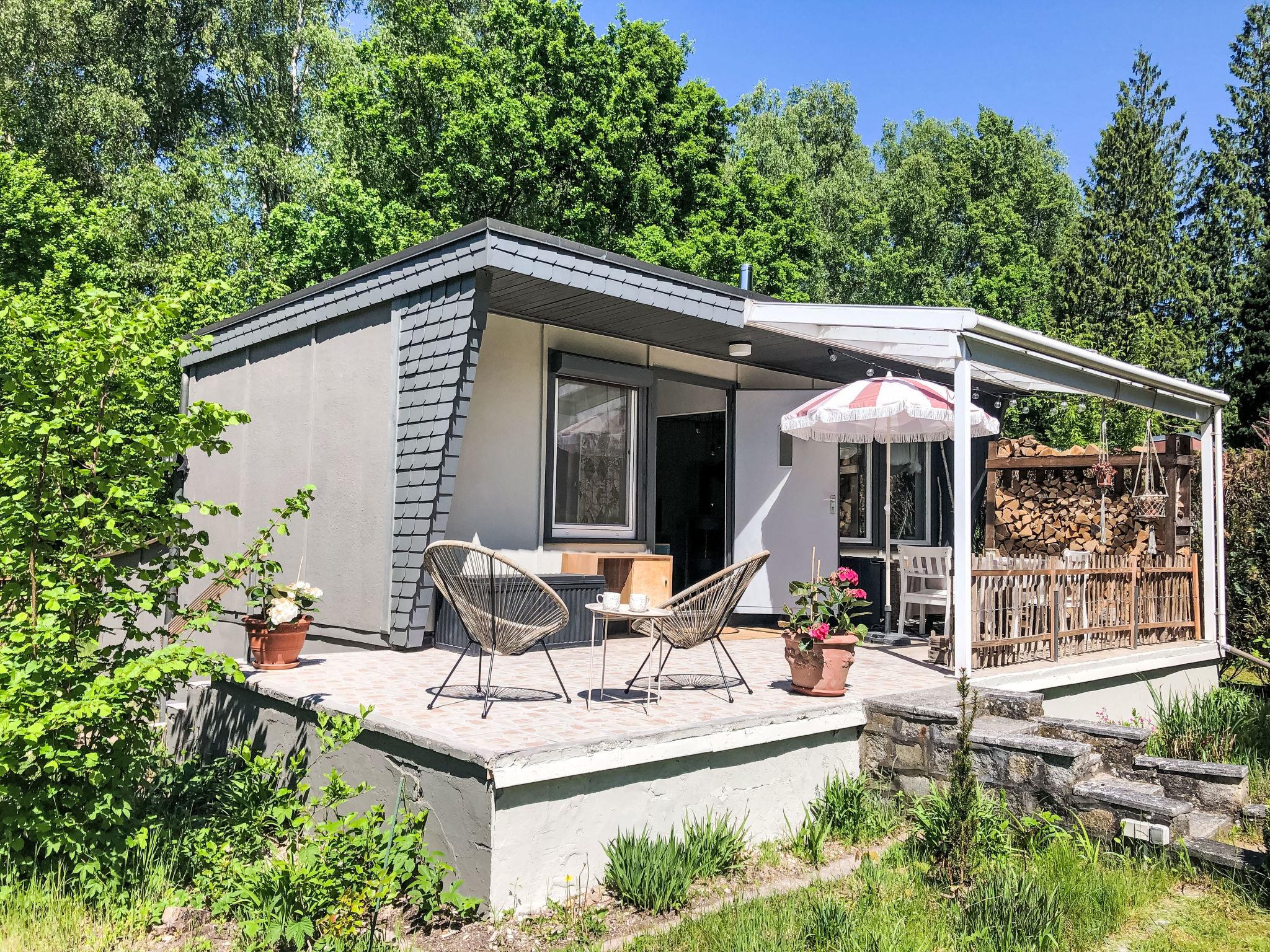 "Alva", 2-room bungalow 26 m2, on the ground floor. Bright, practical and cosy furnishings: living/dining room with Scandinavian wood stove, dining nook and cable TV (flat screen). Exit to the terrace. 1 room with sliding door with 1 double bed (140 cm, length 200 cm). Small kitchenette (4 hot plates, mini-oven, oven, toaster, kettle, electric coffee machine). Shower/WC. Boiler. Large terrace 15 m2. Terrace furniture, barbecue, deck chairs (1). Beautiful view of the forest. Facilities: hair dryer, logs (free). Parking at the house. Please note: fridge without freezer, non-smokers only. Maximum 1 pet/ dog allowed. Smoke alarm.