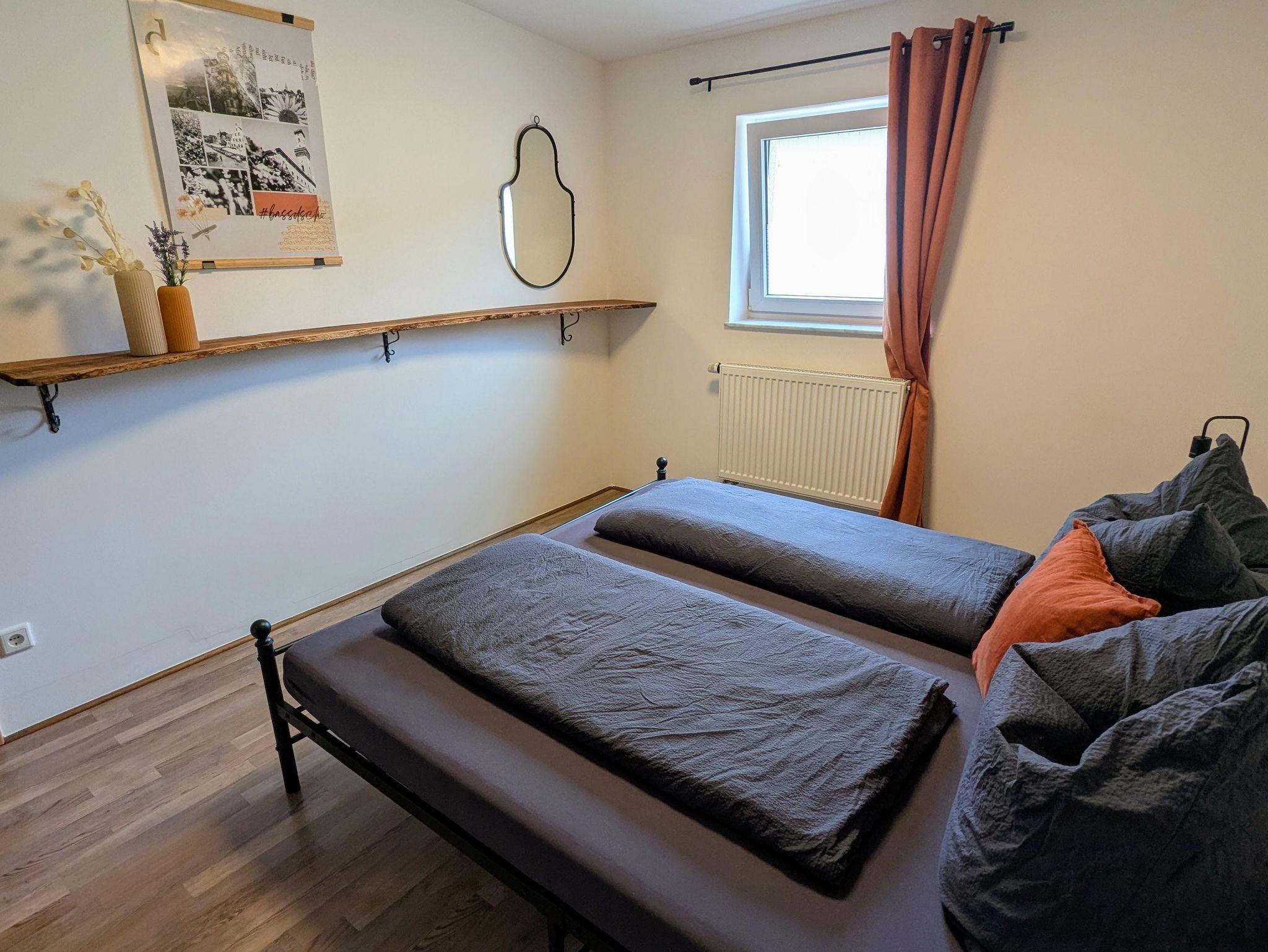 Willkommen in unserem großzügigen 80?m² Apartment Feld&Flair, ideal für Familien und kleine Gruppen! Die Ferienwohnung bietet Platz für bis zu 6 Personen und verfügt über drei Schlafzimmer (ein Doppelbett, ein französisches Doppelbett, ein Etagenbett) sowie ein Schlafsofa im Wohnzimmer. Zwei moderne Badezimmer mit Dusche, eine voll ausgestattete Küche mit Spülmaschine, Backofen, Herd, Kühlschrank, Kaffeemaschine und Wasserkocher lassen keine Wünsche offen. Genießen Sie entspannte Stunden im gemütlichen Wohnbereich mit Flachbild-Sat-TV oder auf der möblierten Terrasse mit Gartenblick. Kostenloses WLAN, Bettwäsche, Handtücher, ein eigener Eingang sowie kostenfreier Parkplatz runden das Angebot ab. Die Nichtraucherwohnung befindet sich im Erdgeschoss und bietet Ihnen höchsten Komfort für einen angenehmen Aufenthalt – ob für Städtereisen, Familienurlaub oder berufliche Aufenthalte.