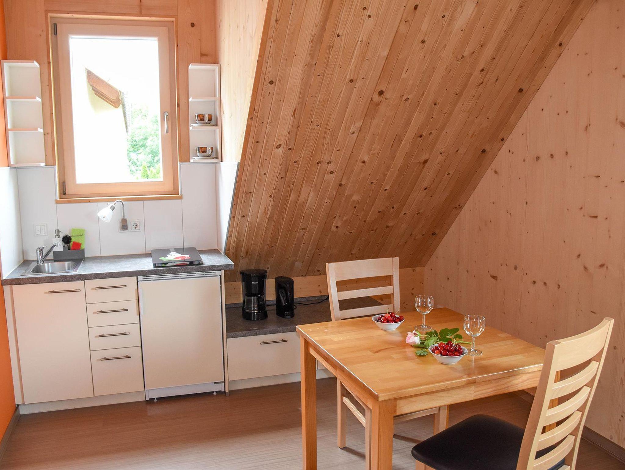 Die Wohnung befindet sich im Obergeschoss. 39 Quadratmeter Wohnfläche bieten Ihnen einen unvergesslichen Urlaub oder Aufenthalt. In dem Schlafzimmer befindet sich ein Doppelbett, ein kleiner Schrank und ein Flachbild Sat TV. Eine weitere Schlafmöglichkeit gibt es auf der Galerie mit zwei Einzelbetten + TV. Die Kochnische ist ausgestattet mit Kühlschrank, Kaffeemaschine, Küchenuntensilien, Wasserkocher und Kochfeld. Das Bad verfügt über eine Dusche, WC und Haartrockner. Das Highlight der Wohnung ist der Balkon mit Gartenmöbeln und Zugang über Schlafzimmer. WLAN nutzen Sie in allen Bereichen der Unterkunft kostenfrei. Privatparkplätze stehen an der Unterkunft ebenfalls zur Verfügung.