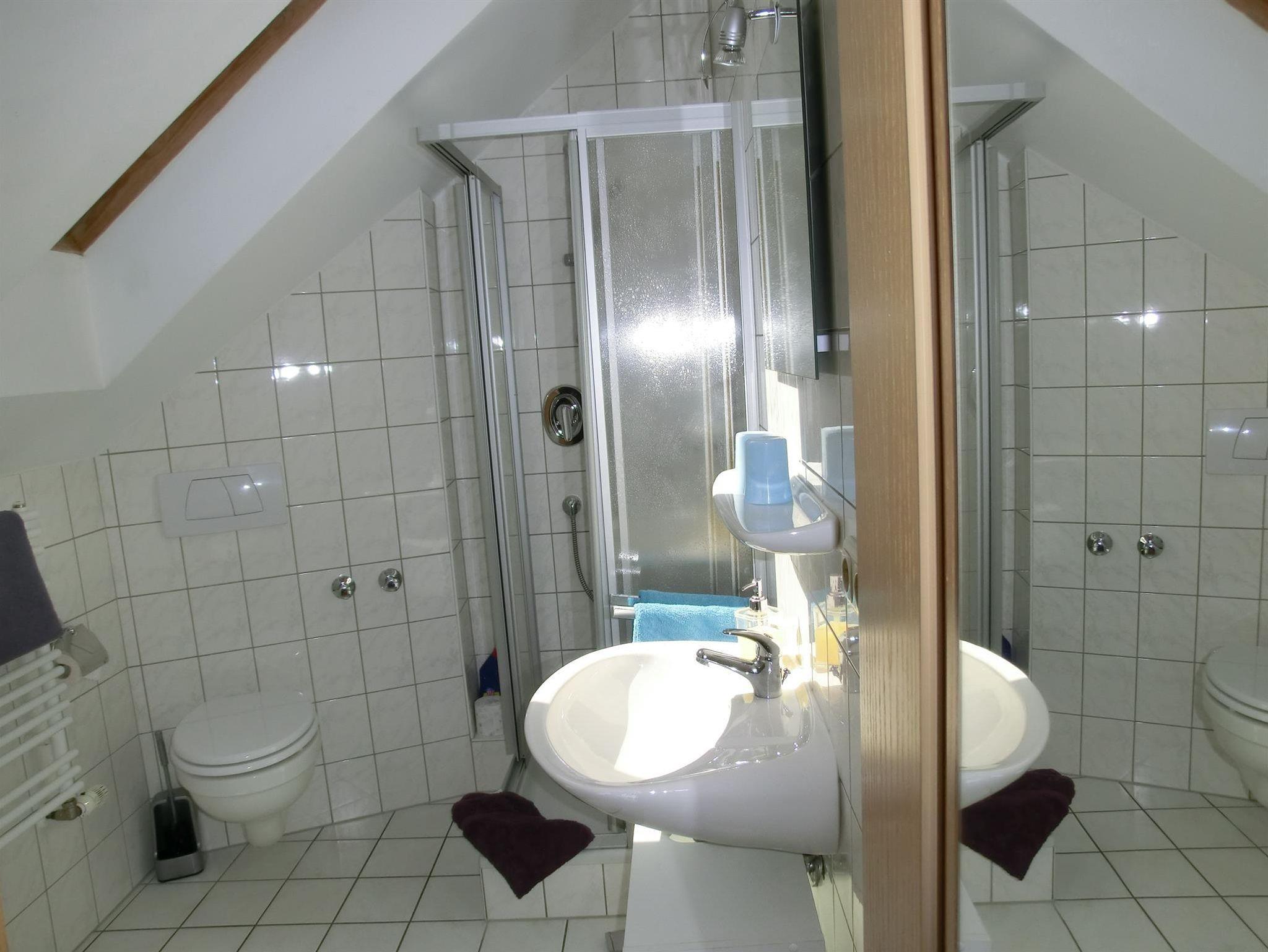 Wir bieten ein hübsches und helles Doppelzimmer im Dachgeschoss inkl. eigenes Bad mit Dusche.