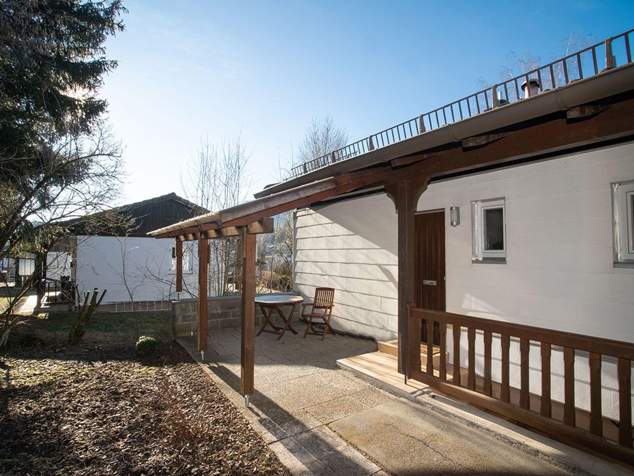 Hinter dem großzügig überdachten Eingangsbereich (Nord-Ost-Terrasse) erwartet Sie ein ruhig am Hang gelegenes, gemütlich und funktional ausgestattetes Ferienhaus mit Zentralheizung.