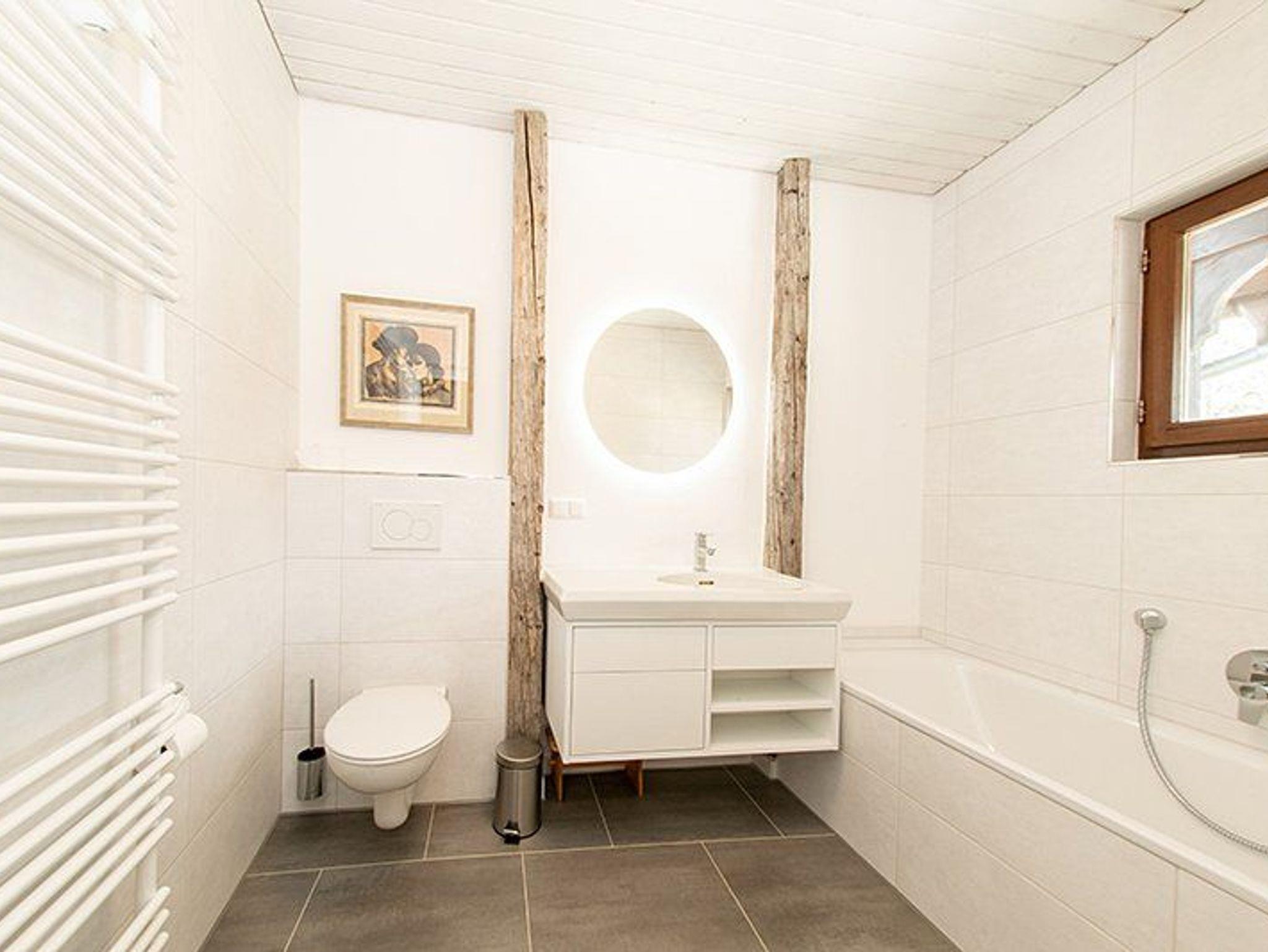 Ihnen stehen zwei vollwertige Badezimmer zur Verfügung. Eines mit Badewanne/WC und eines mit Dusche/WC.