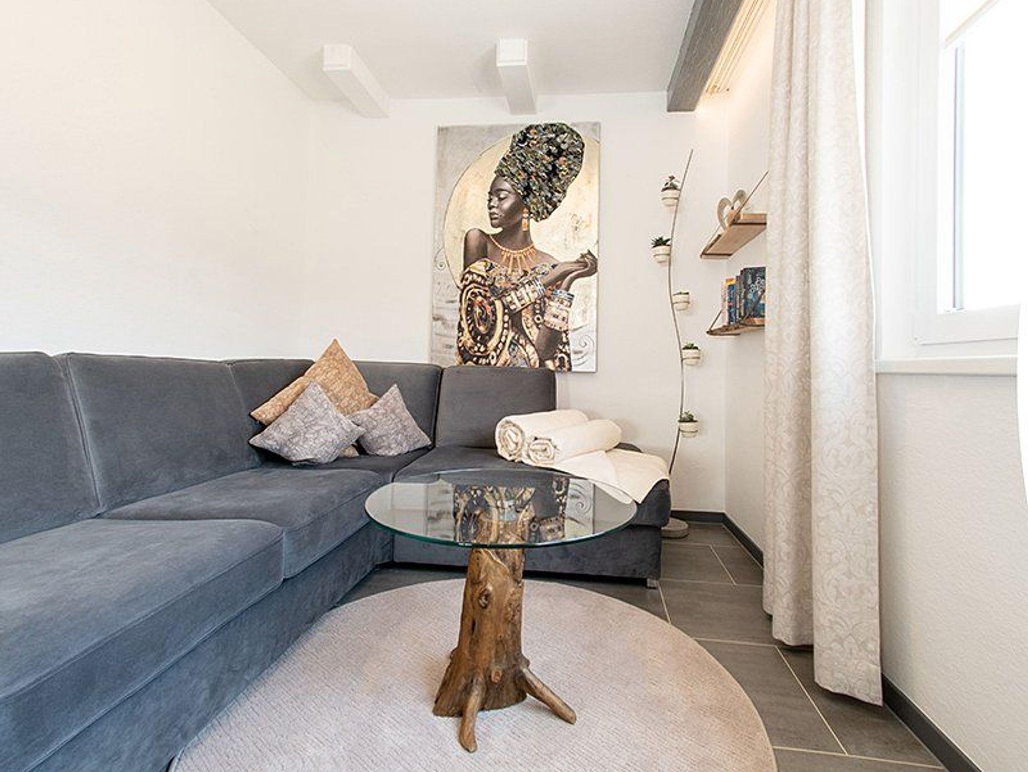 Das Wohnzimmer ist mit einer großzügigen, ausziehbaren Couch (mit vollwertiger Matratze) ausgestattet, so dass eine weitere Person Platz findet. Ein Flachbildfernseher und Internet sind ebenfalls vorhanden.