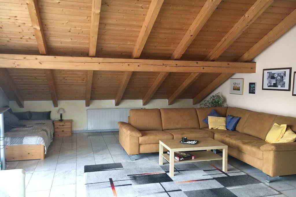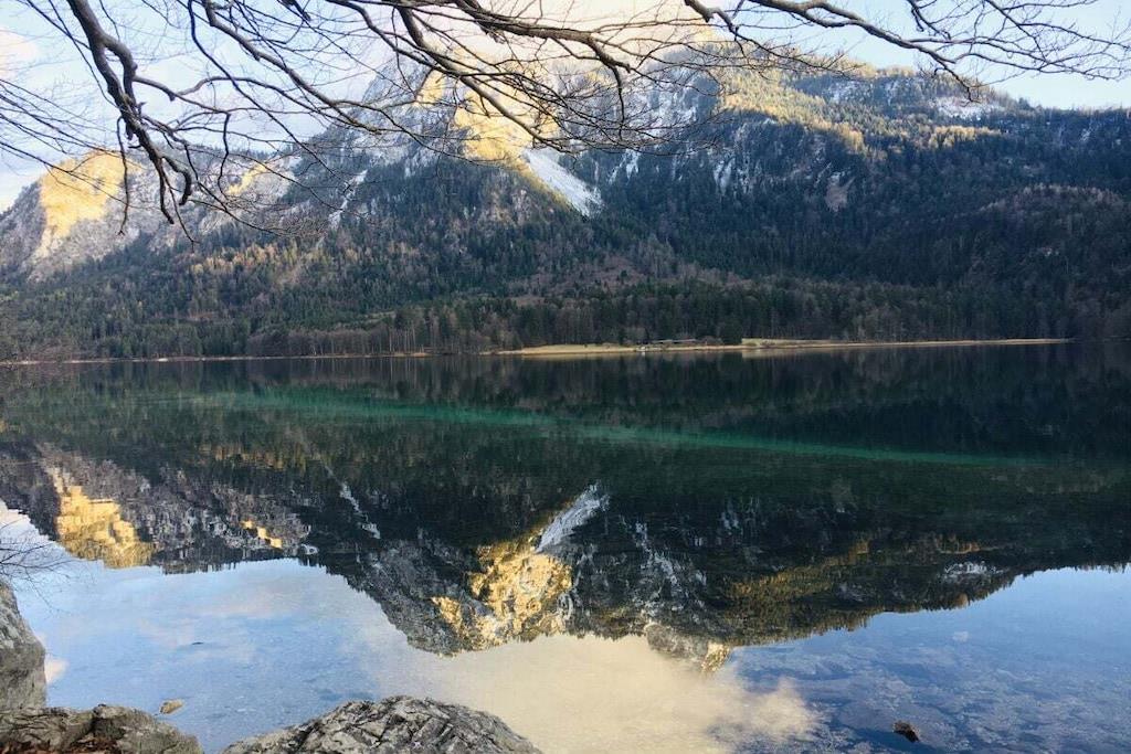 Smuk, smagfuldt indrettet ferielejlighed med udsigt over bjergene Ferielejligheden er rolig og kun 300 m fra Forggensee badeområde. På Forggensee har du mulighed for at spille minigolf og Kini-kanoen tager altid på skønne solnedgangsture om aftenen. Du har din egen parkeringsplads foran huset. Dine cykler er beskyttet under baldakinen eller i huset under trappen. Fra balkonen har du bjergudsigt over Säuling og Tegelberg. Den solrige balkon inviterer dig til at spise morgenmad og et glas vin om aftenen ved solnedgang. Vi vil med glæde byde dig velkommen som vores gæster.