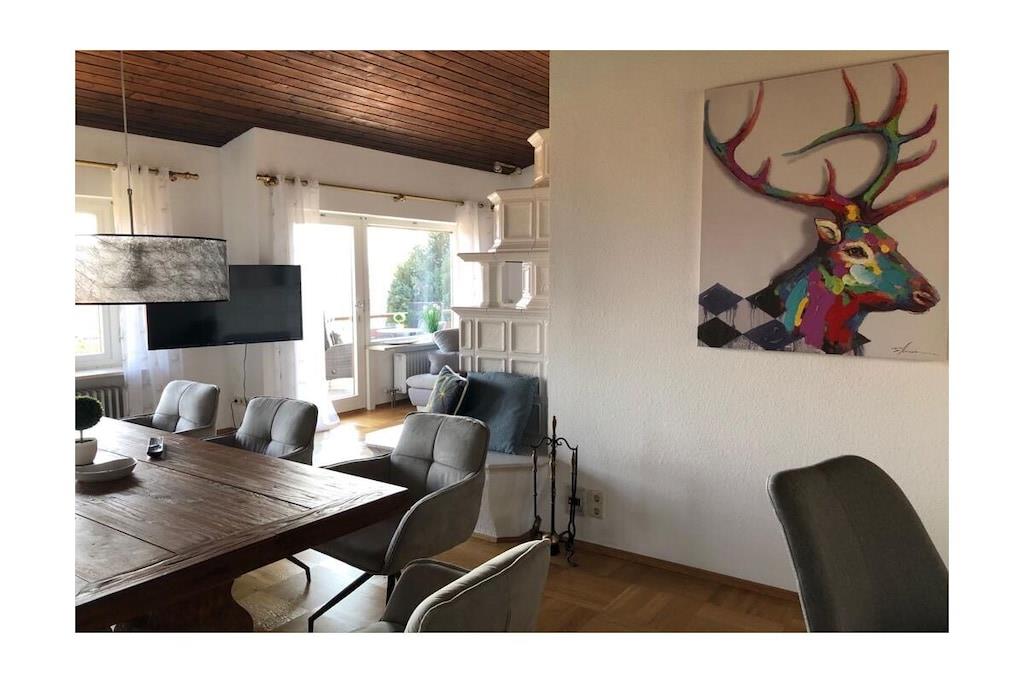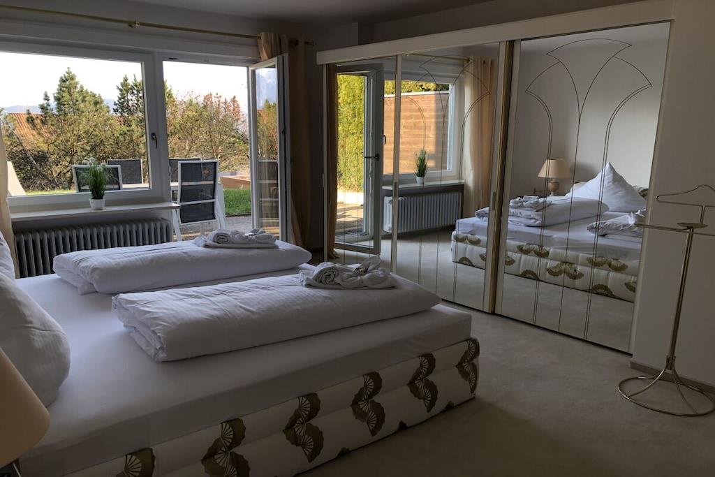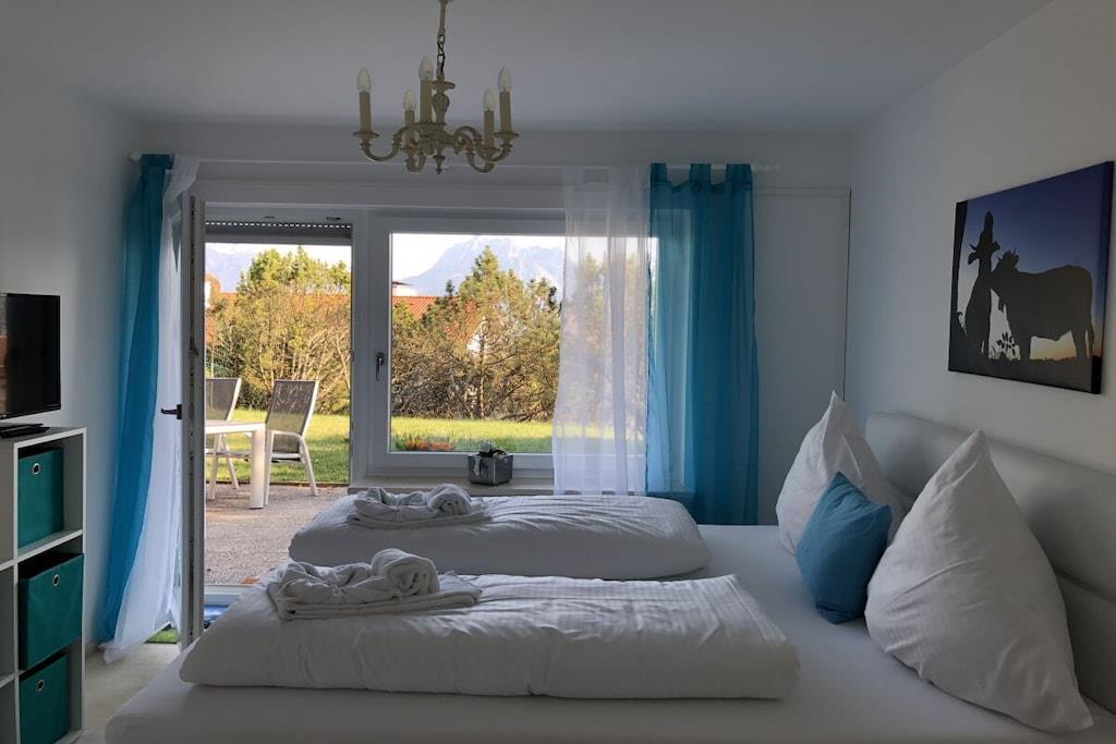 Wir heißen Sie herzlich Willkommen in der Villa Alpenblick. Es erwarten Sie 150 m² exklusiver Urlaub mit 3 Schlafzimmern, Wohnzimmer , Küche mit einem großzügigen Essbereich bis zu 6 Personen , 3 Toiletten und 2 Badezimmer mit Dusche und Wanne, einem wunderschönen großen Balkon und einem windgeschützten Lounge Platz. Im EG haben Sie die 3 Schlafzimmer 2 davon mit mit einer wunderschöne große Terrasse mit Garten. Das Haus können Sie direkt von der Garage aus durch einen Tunnel erreichen. Das Haus selbst ist ein Nichtraucher-Haus, jedoch können Sie im Garten sowie auf den Balkonen rauchen. Für ihre sportlichen Aktivitäten haben Sie auch kostenfreien Eintritt in das grosse Sportstudio Füssen mit allen Aktivitäten und Sauna