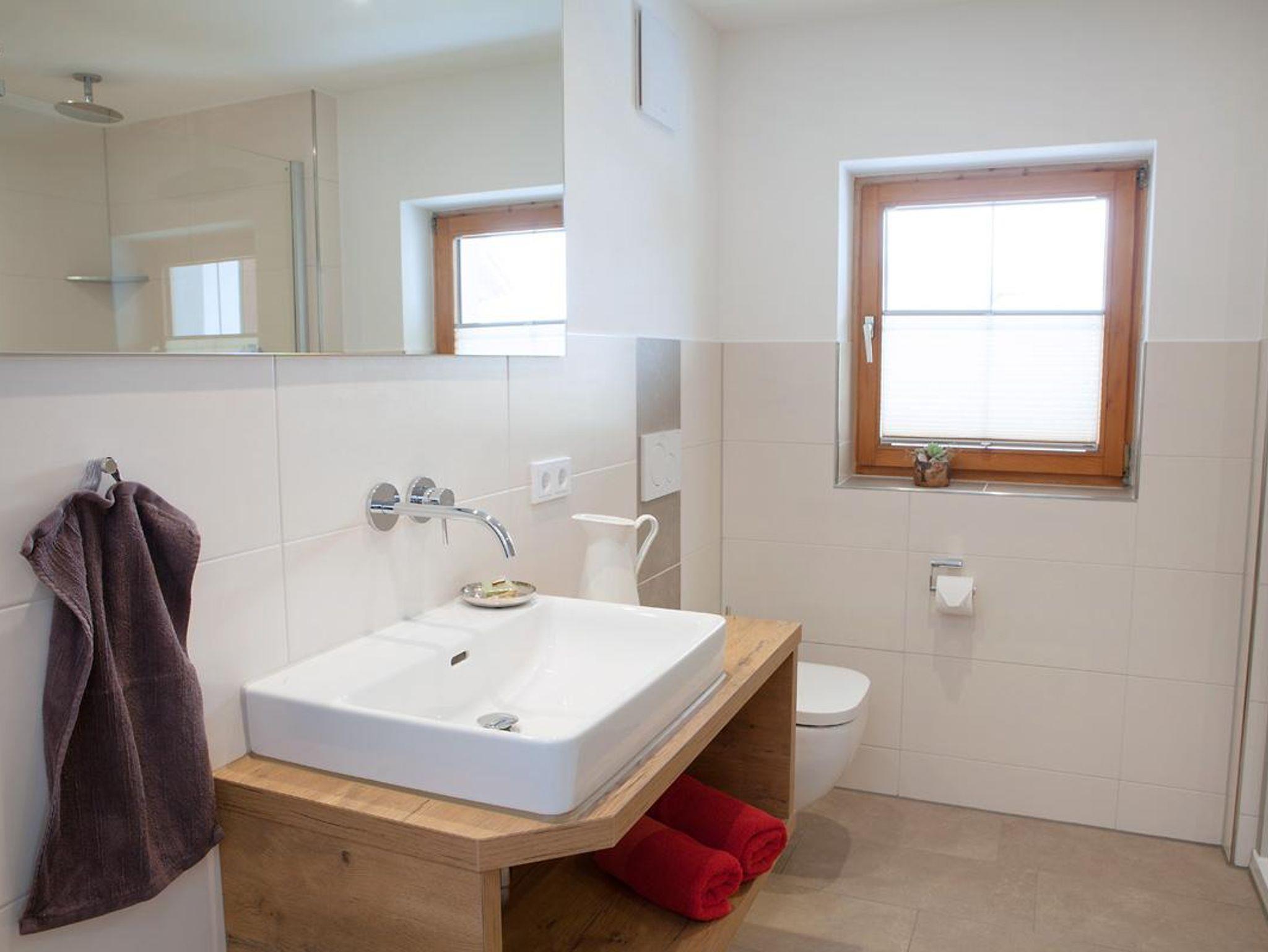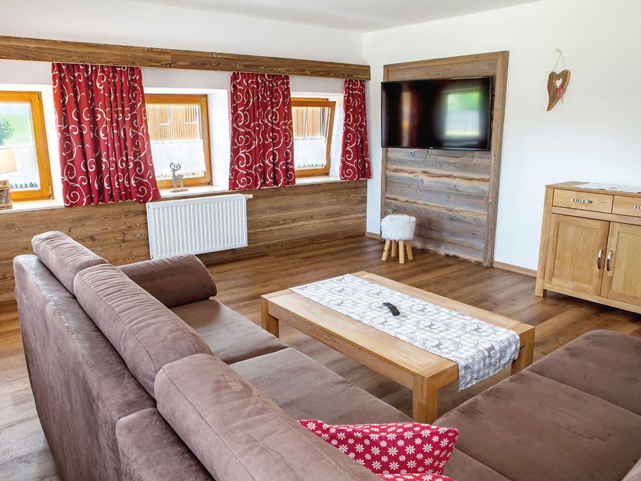 Die 5-Sterne-Ferienwohnung Säuling (103 qm) ist im Bauernhaus im 1. Stock. Sie ist bestens geeignet für 2 bis 4 Personen. Es gibt zwei Schlafzimmer mit je einem Doppelbett (ein Schlafzimmer mit Flachbild-TV und kleines angrenzendes Kinderzimmer mit Gitterbett). Das große Wohnzimmer mit Sofa und Flachbild-TV lädt zum Verweilen ein. Die Küche ist voll ausgestattet mit Esstisch, Spülmaschine, Backofen, Kühlschrank, Kaffeemaschine, Wasserkocher etc.! Von dort aus haben Sie Zugang zum Balkon. Es gibt zwei Badezimmer mit Regendusche und WC.