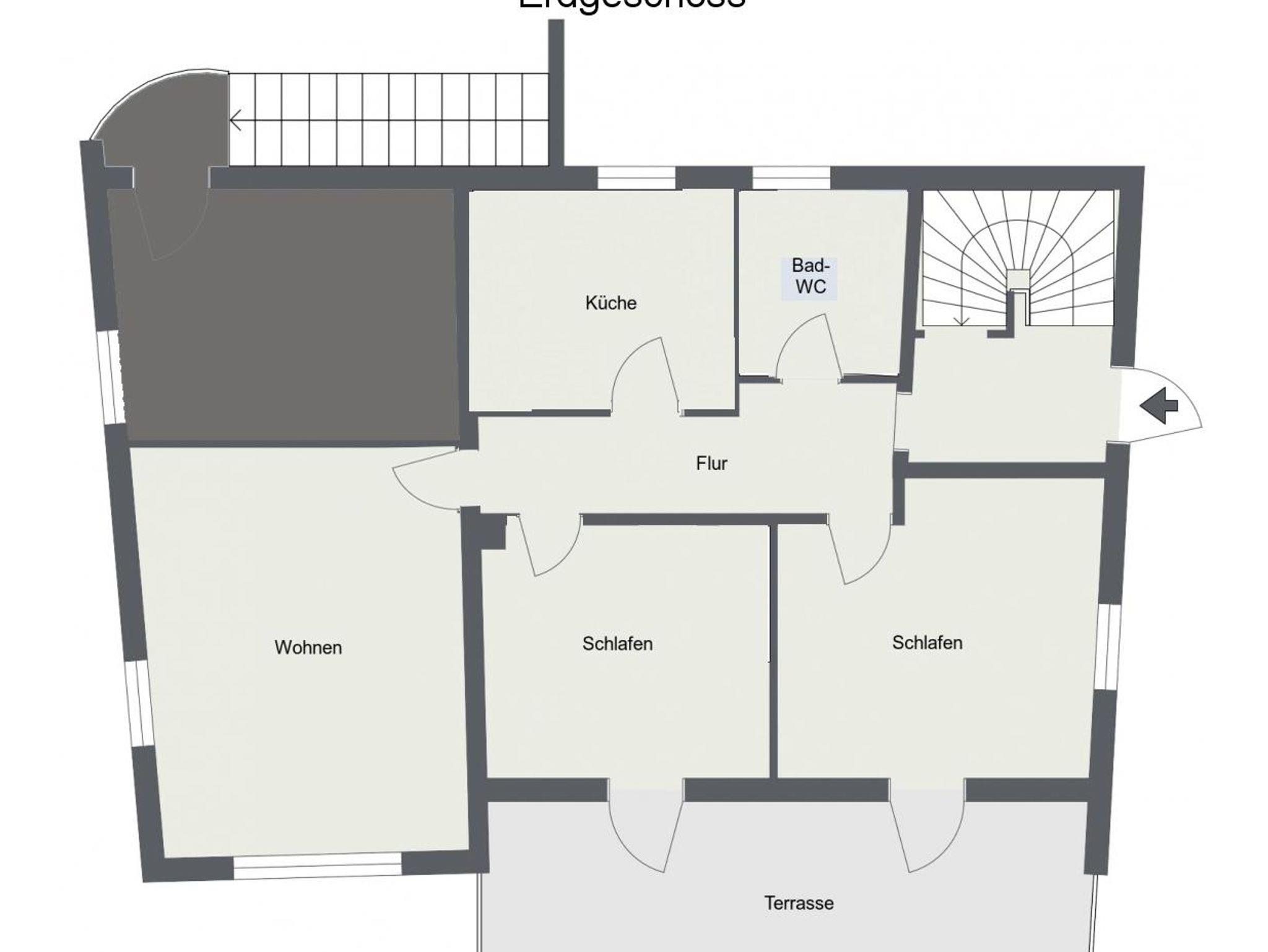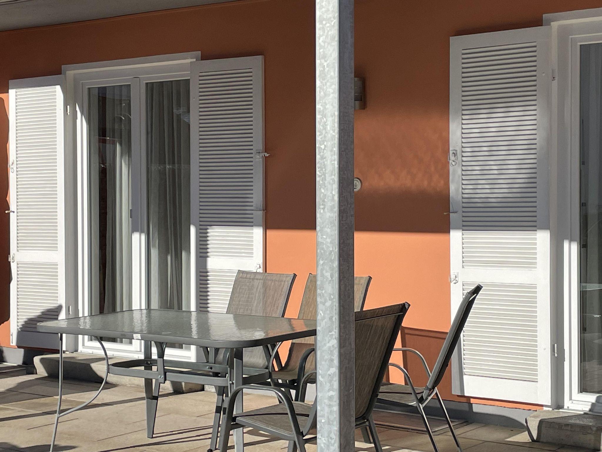 • 1 Terasse mit Gartenmöbel teilweise überdacht