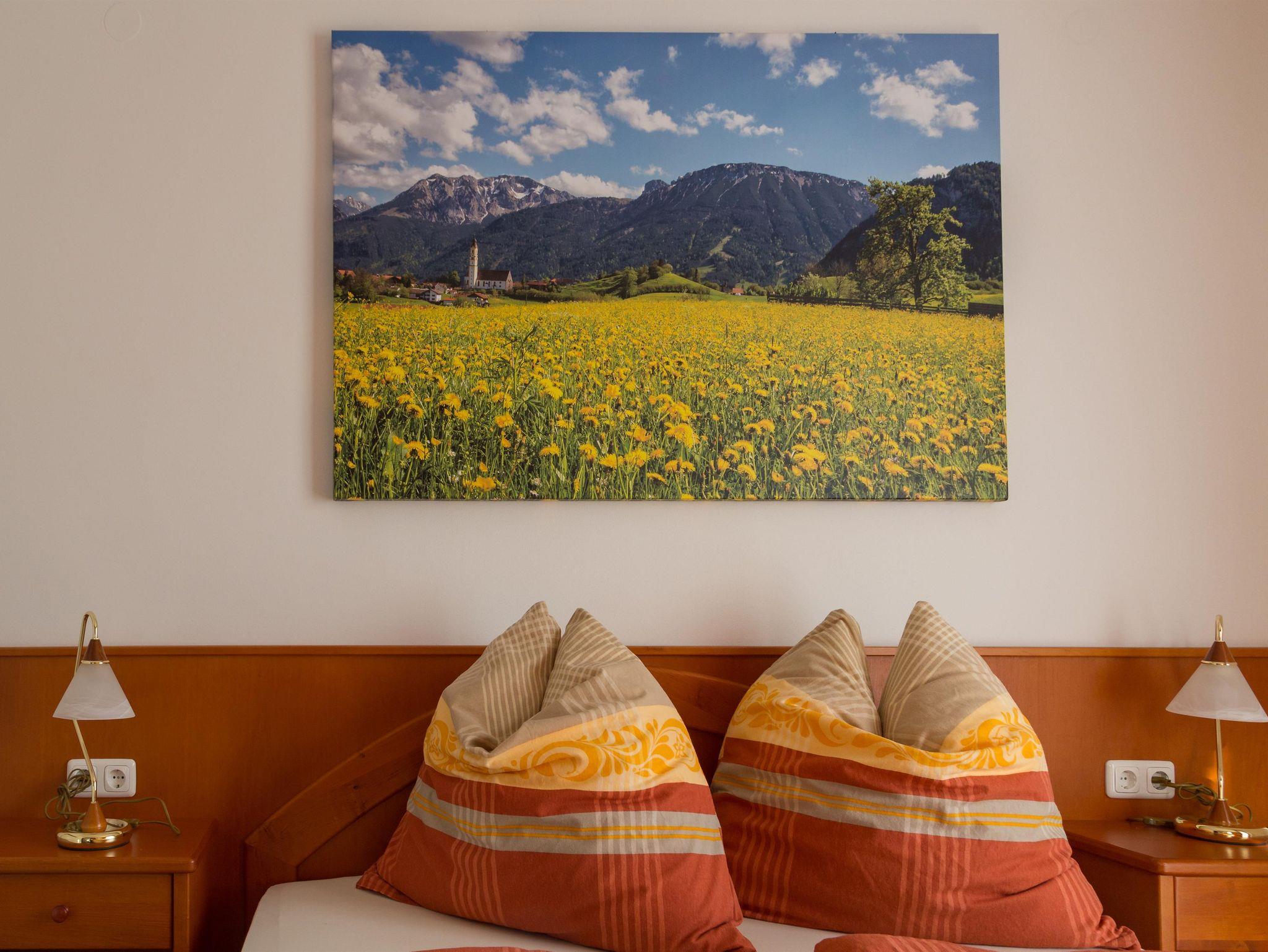 Die lebendige und traditionsreiche Altstadt ist über 700 Jahre alt und lädt zum Flanieren ein. Von unserer Ferienwohnung haben Sie einen wundervollen Ausblick auf die Bergkette mit den Hausbergen Tegelberg und Säuling.