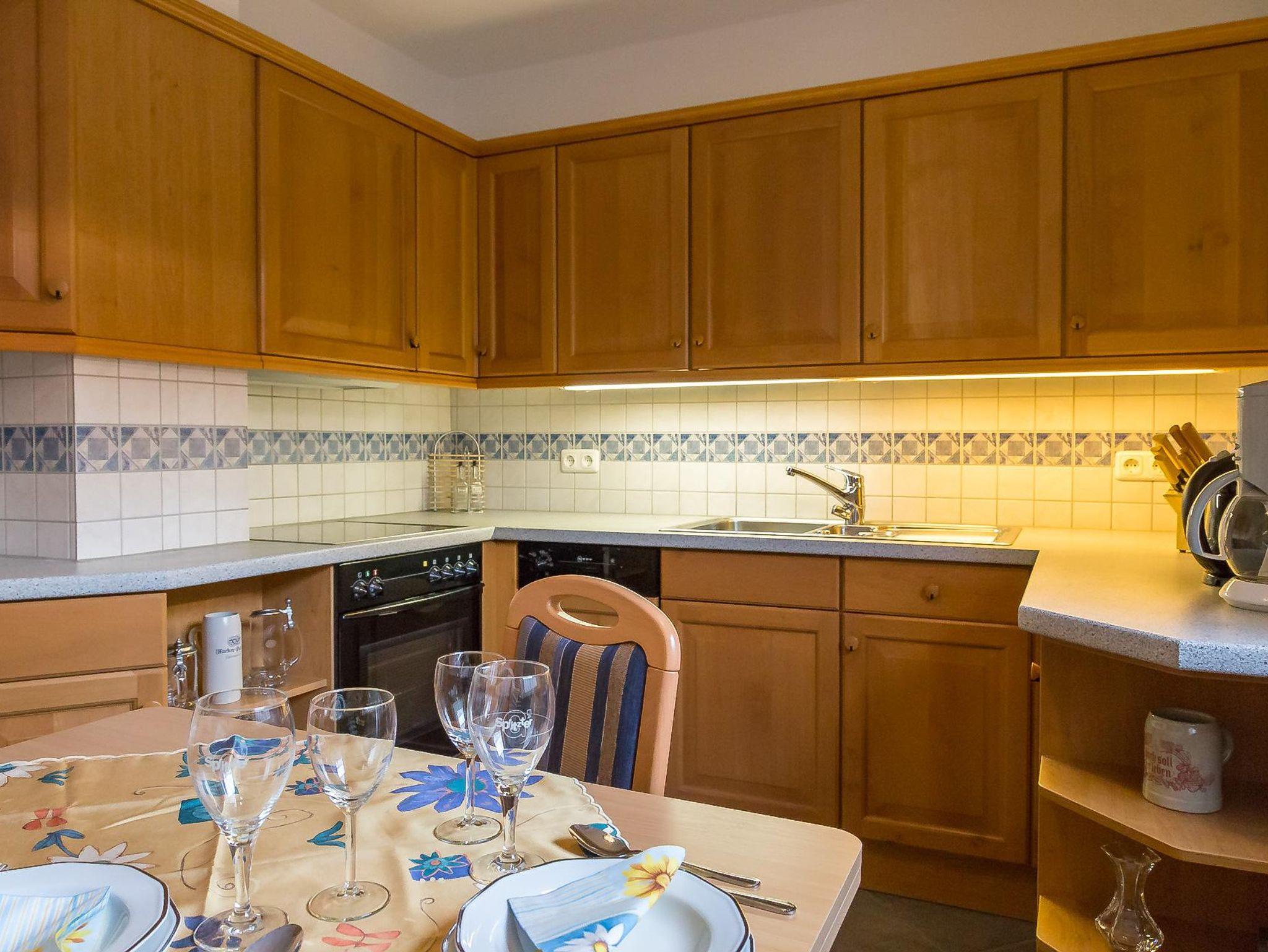 • 1 Küche mit Spülmaschine, Kühlschrank mit Gefrierfach, Backofen, Mikrowelle und gemütlicher Sitzecke