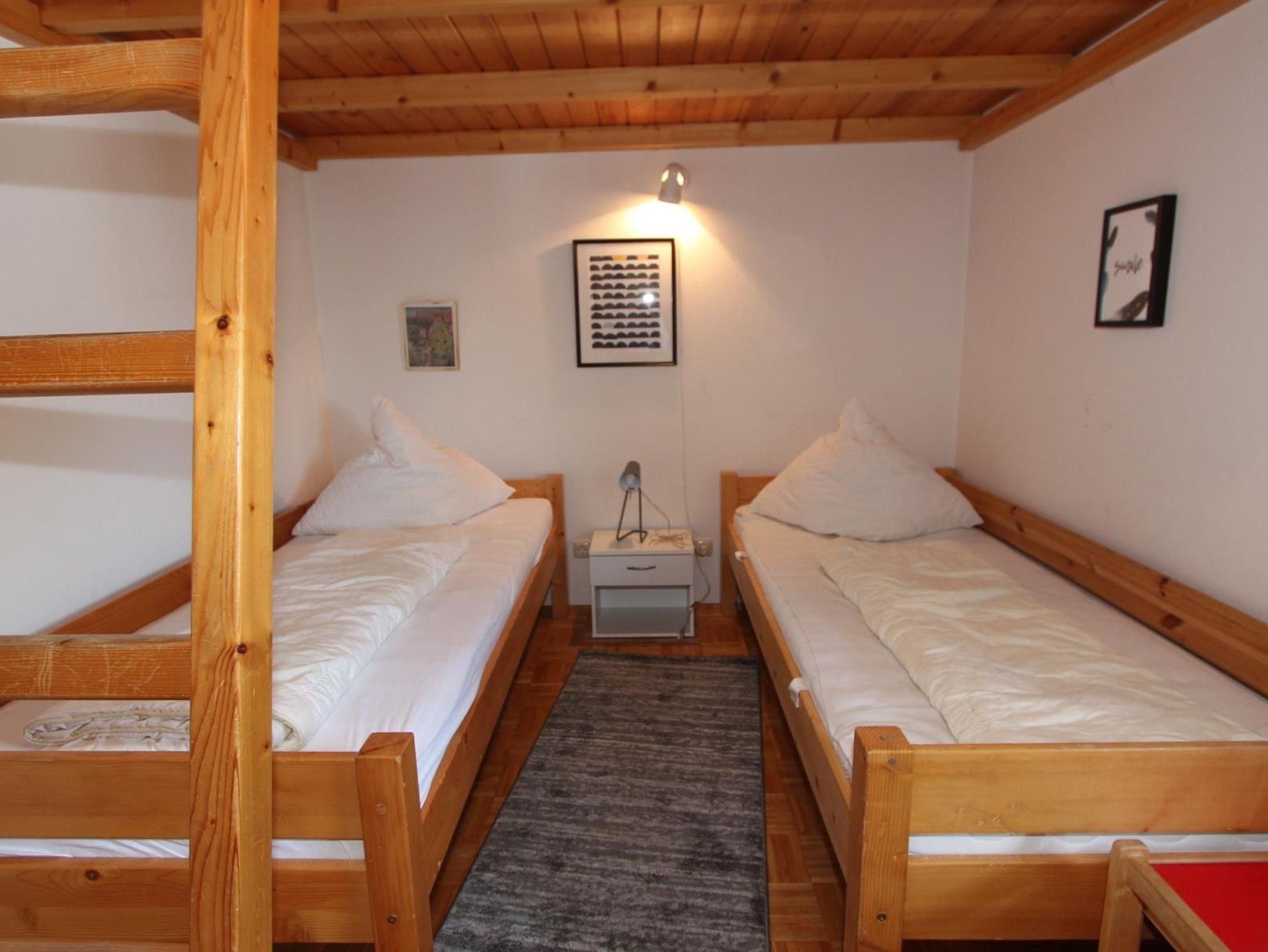 Obergeschoss. Ein Schlafraum mit Doppelbett, ein Schlafzimmer mit zwei getrennten Betten und