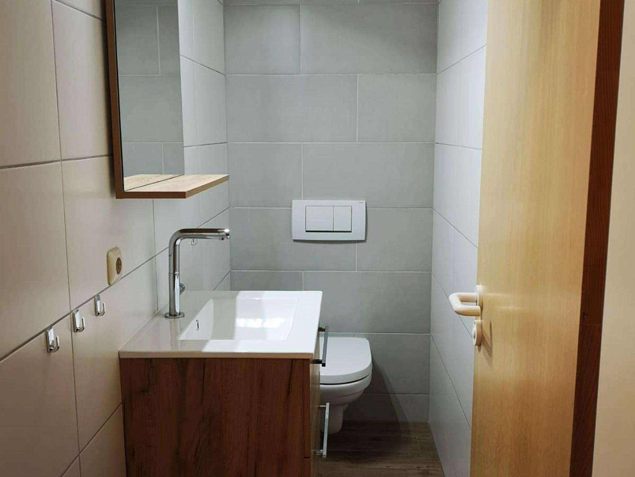 Es steht Ihnen ein kleines WC mit Waschtisch und das größere Bad mit einer 90 cm x 120 cm großen Wohlfühldusche zur Verfügung. Nutzen Sie die Regenschauerfunktion der Dusche, um zu entspannen.