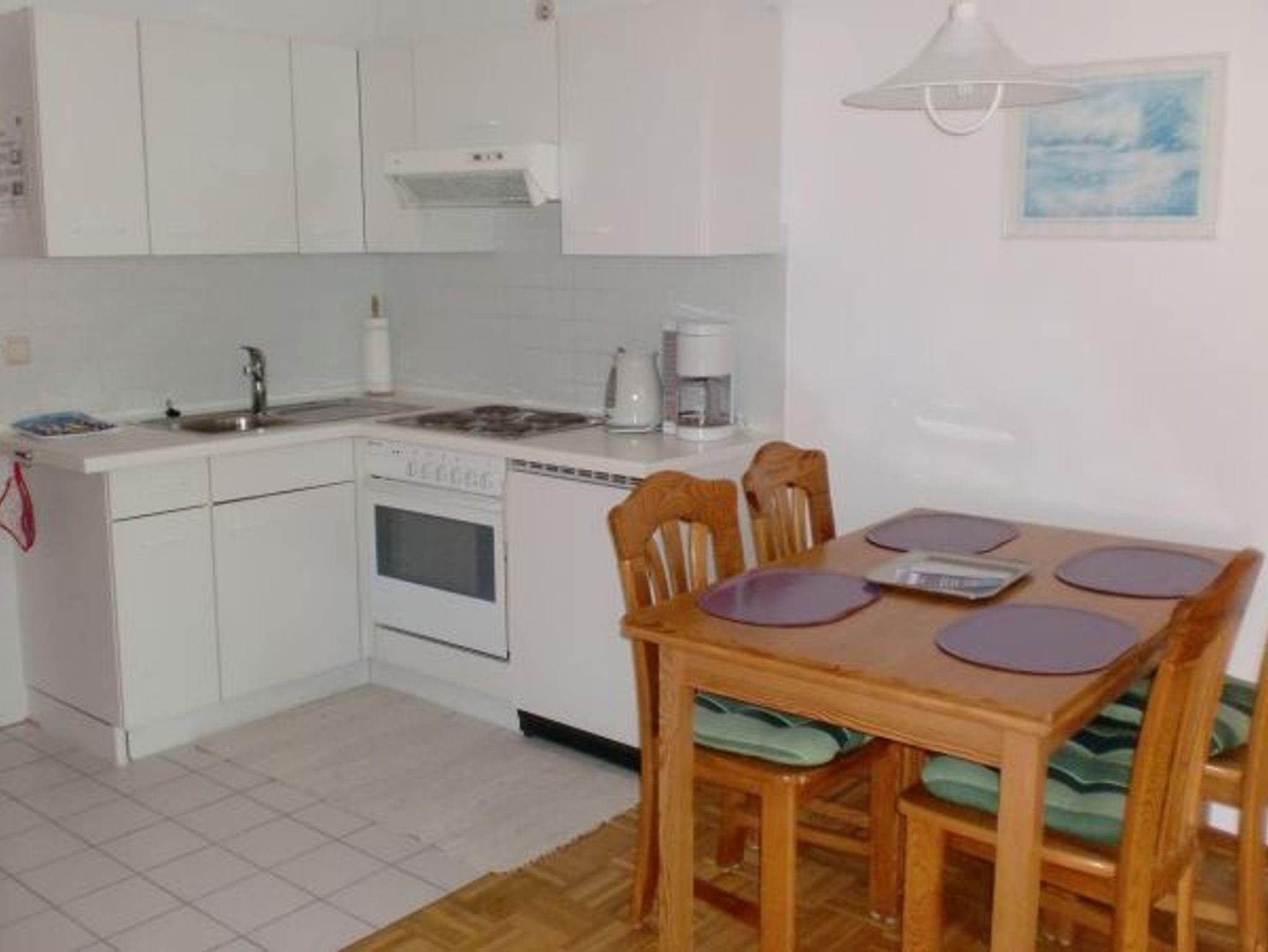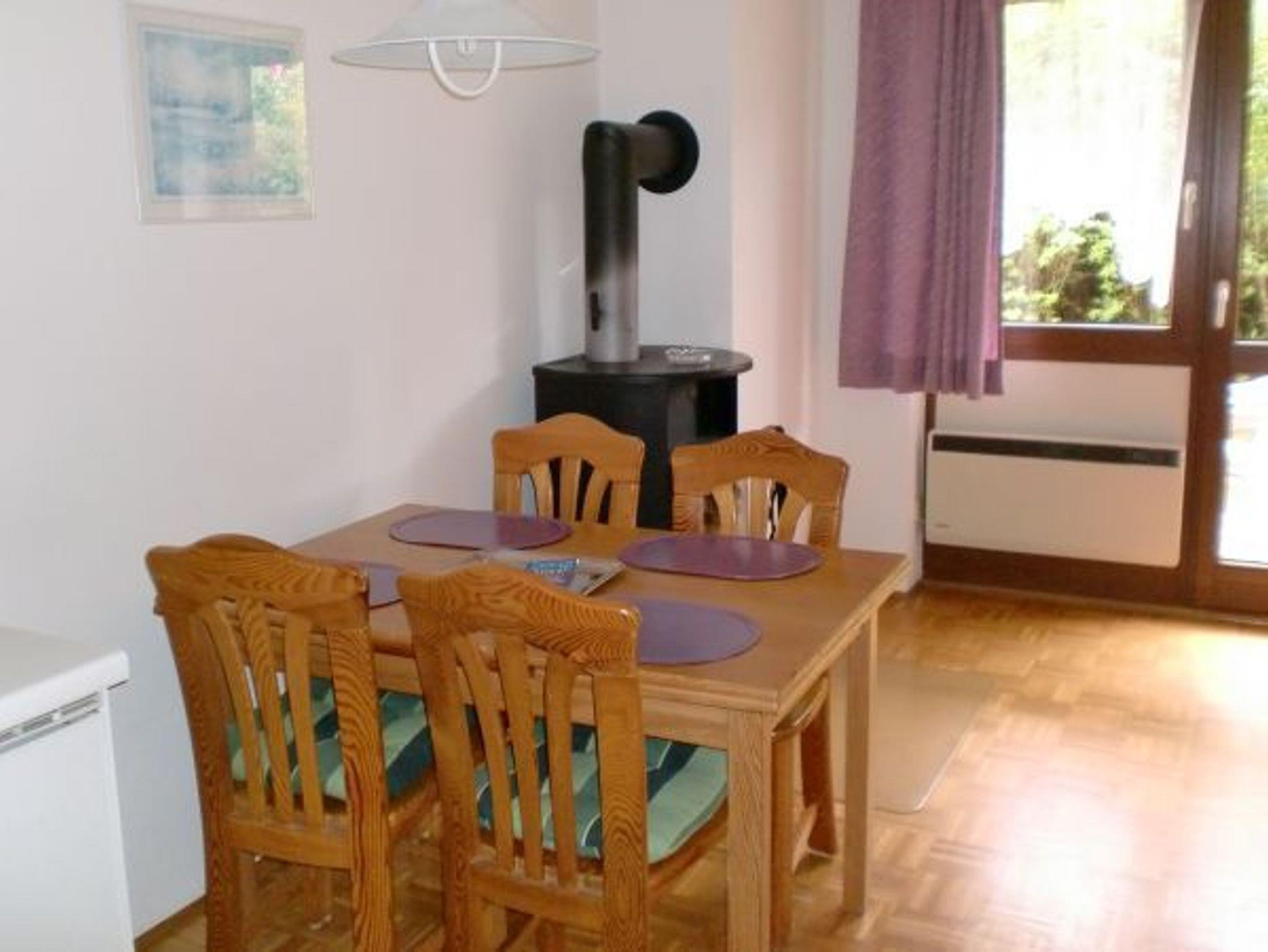 Sie wohnen in einem 2-Zimmer-Appartement bis 4 Personen, ca. 48 m², ein Schlafzimmer mit Doppelbett, Wohn-/Schlafraum mit Doppelbettcouch und Kaminofen, separater Essplatz, voll ausgestatteter Küchenbereich, Diele mit Garderobe, Dusche/WC, Terrasse, SAT-TV und Telefon.