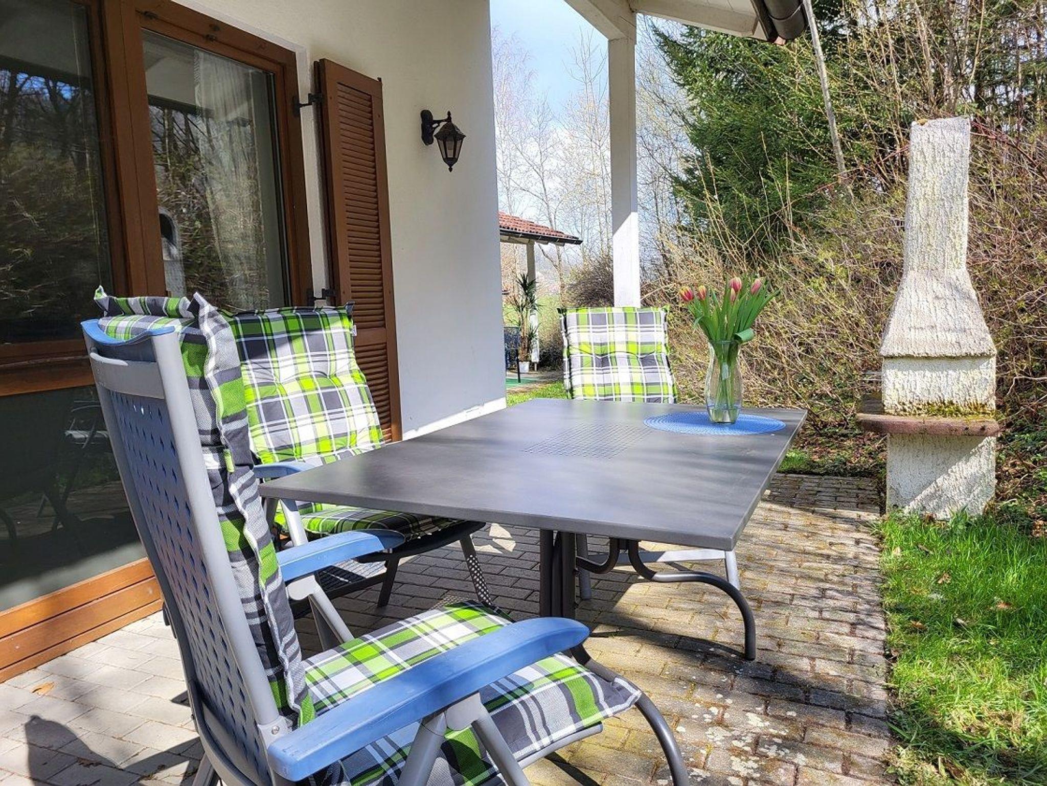 Die sonnige Terrasse ist mit Gartenmöbeln ausgestattet. Sonnenliegen und Grill stehen Ihnen hier zu Verfügung.
