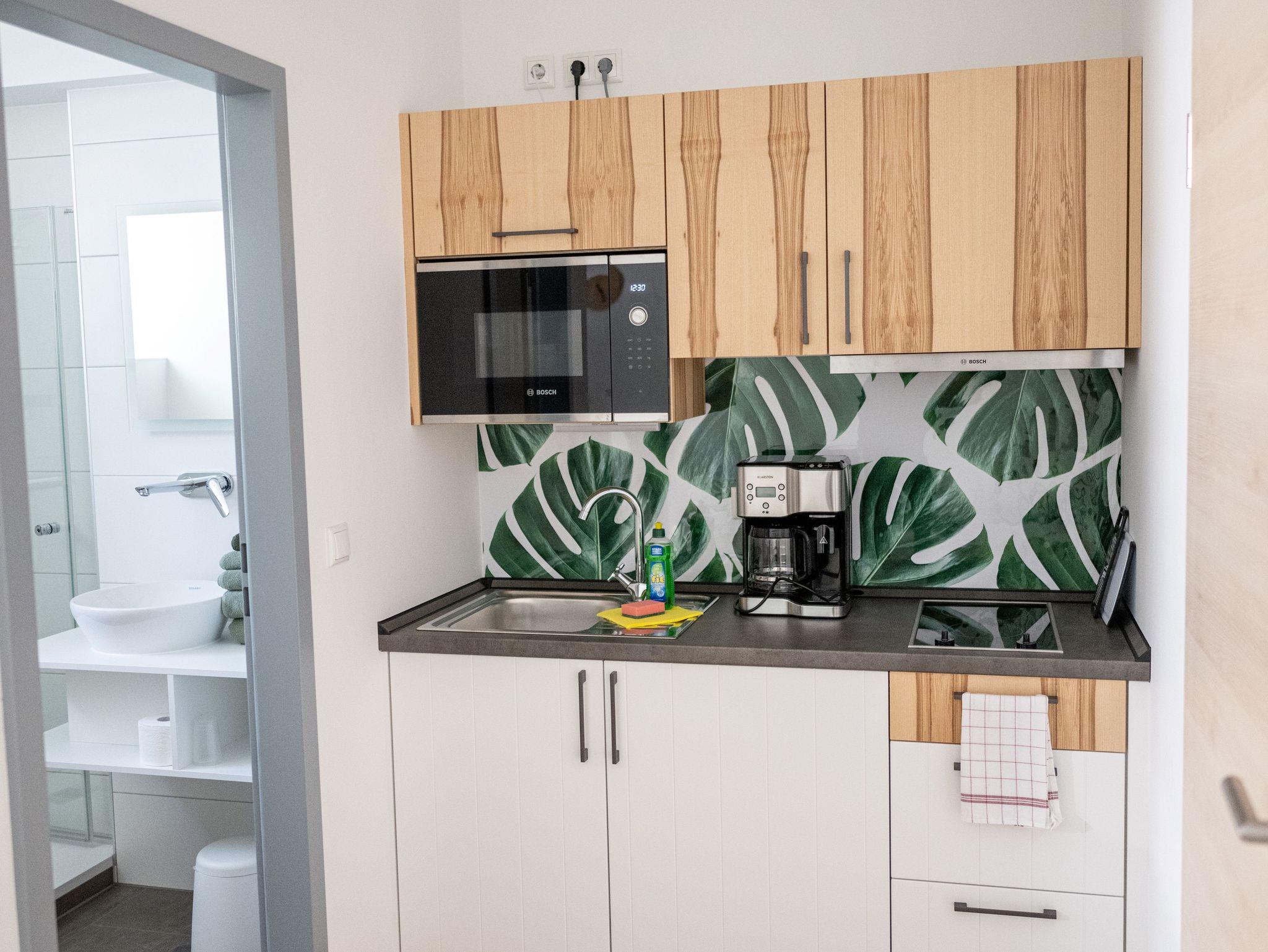 Hell und freundlich gestaltete Kuschelapartments für 2 Personen. Die Apartments verfügen über einen Wohn-/Schlafraum, eine offene, gut ausgestattete Pantryküche und ein Bad.