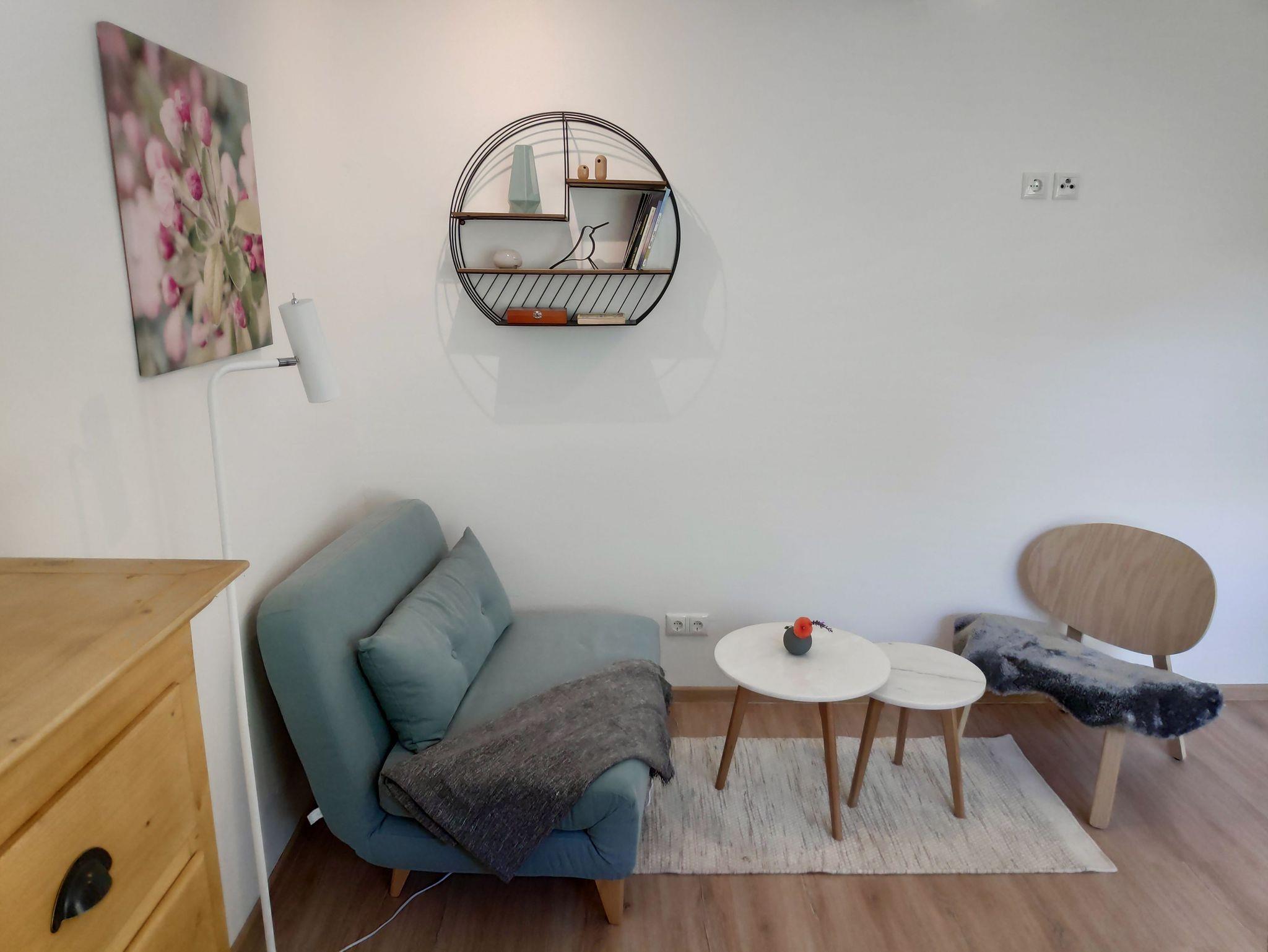 Hell und freundlich gestaltete Wohnung für 2 bis 3 Personen. Die Wohnung verfügt über einen großzügigen Wohnraum mit bequemem Sofa, und offener, gut ausgestattete Küche, ein Schlafzimmer mit Doppelbett und ein Bad.